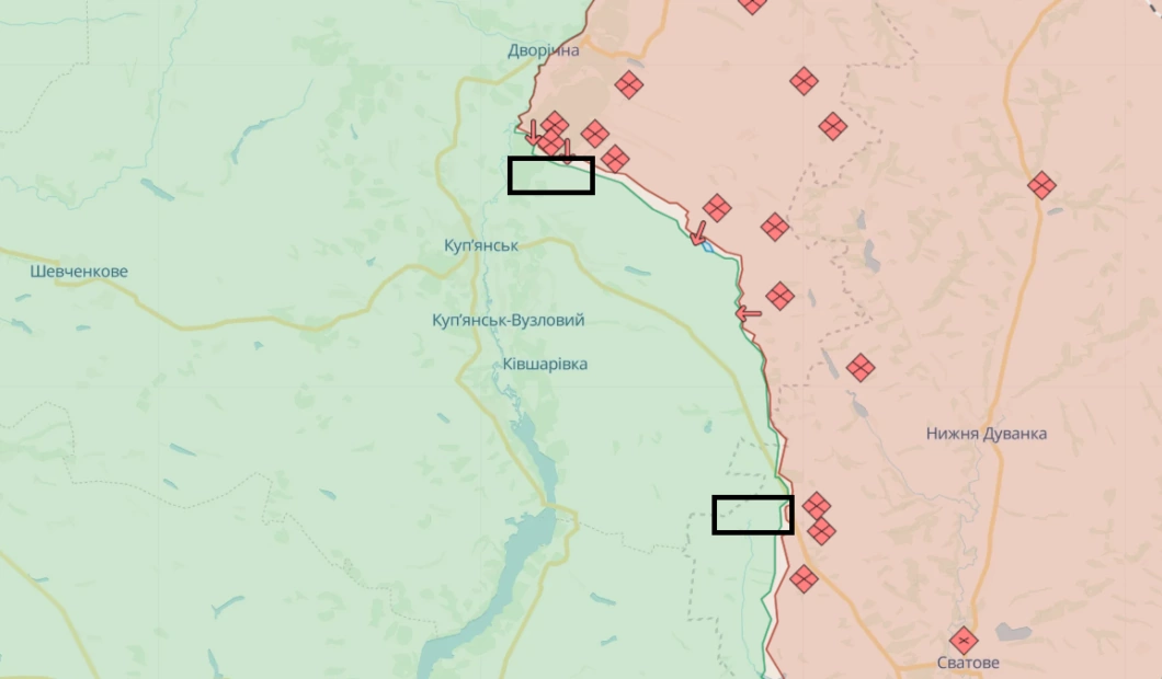 Російські війська продовжують наступальні дії на Куп’янському напрямку. За даними геолокаційних кадрів від 24 грудня, ворог незначно просунувся на південний захід від Першотравневого в напрямку Куп’янська.