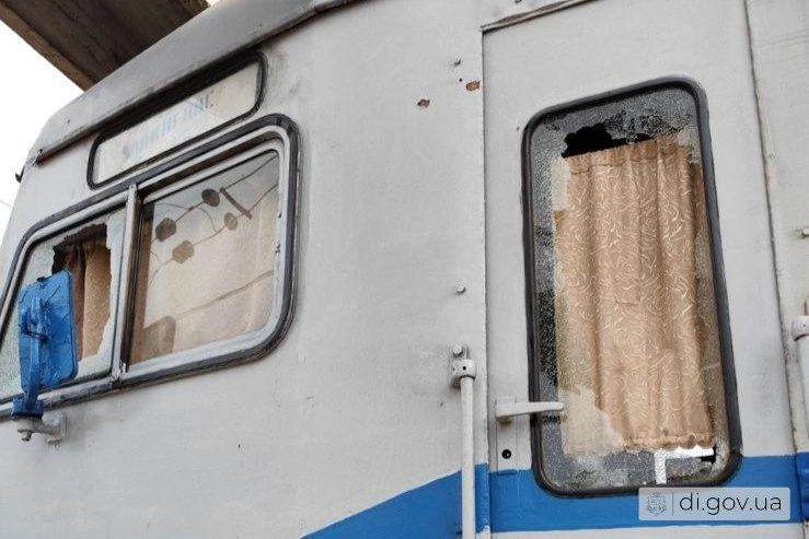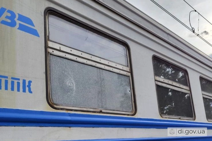 Внаслідок російського обстрілу реактивною системою залпового вогню по місту Дергачі на Харківщині пошкоджено потяг, який рухався маршрутом Слатине – Харків, щонайменше 10 приватних будинків, а також цивільний автомобіль.