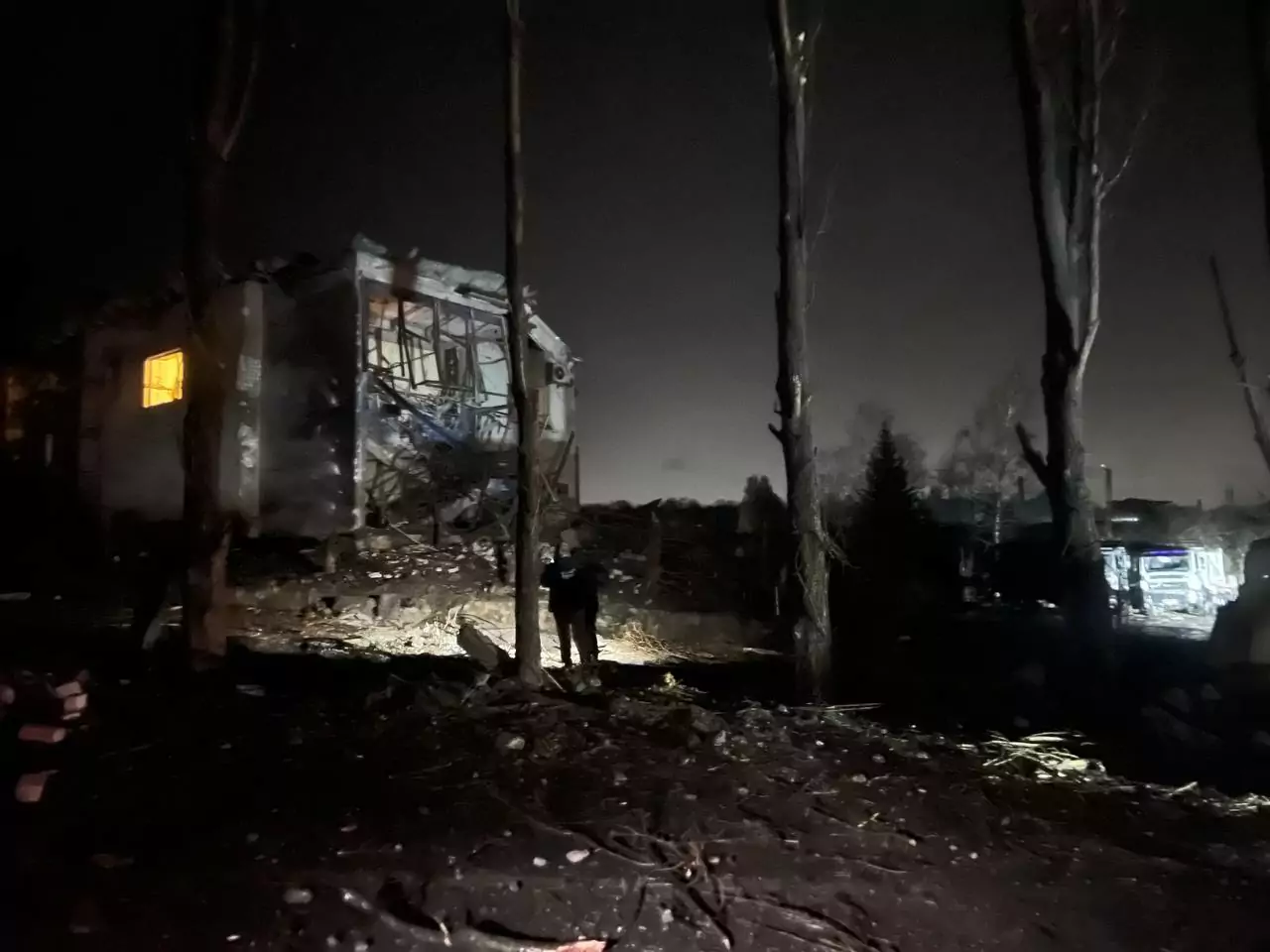 Також пошкоджено лінію електропередач, сім транспортних засобів та до десяти приватних будинків. У житлових будівлях вибиті вікна, пошкоджені фасади та покрівлі.