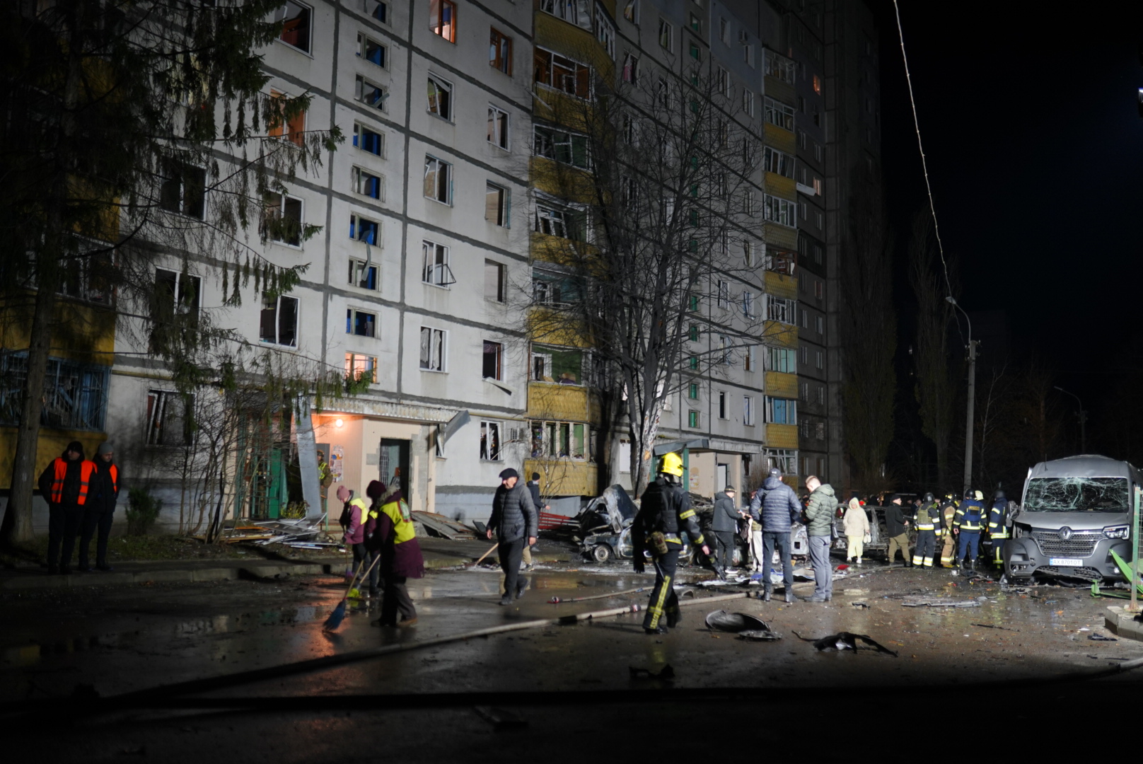 UKRAINE, KHARKIV, Nov. 19 — “Everything was blown out. The front door was broken, the exit was blocked, and the emergency services rescued us,” said Yulia, who lives in a building damaged in a Russian drone attack on Kharkiv.