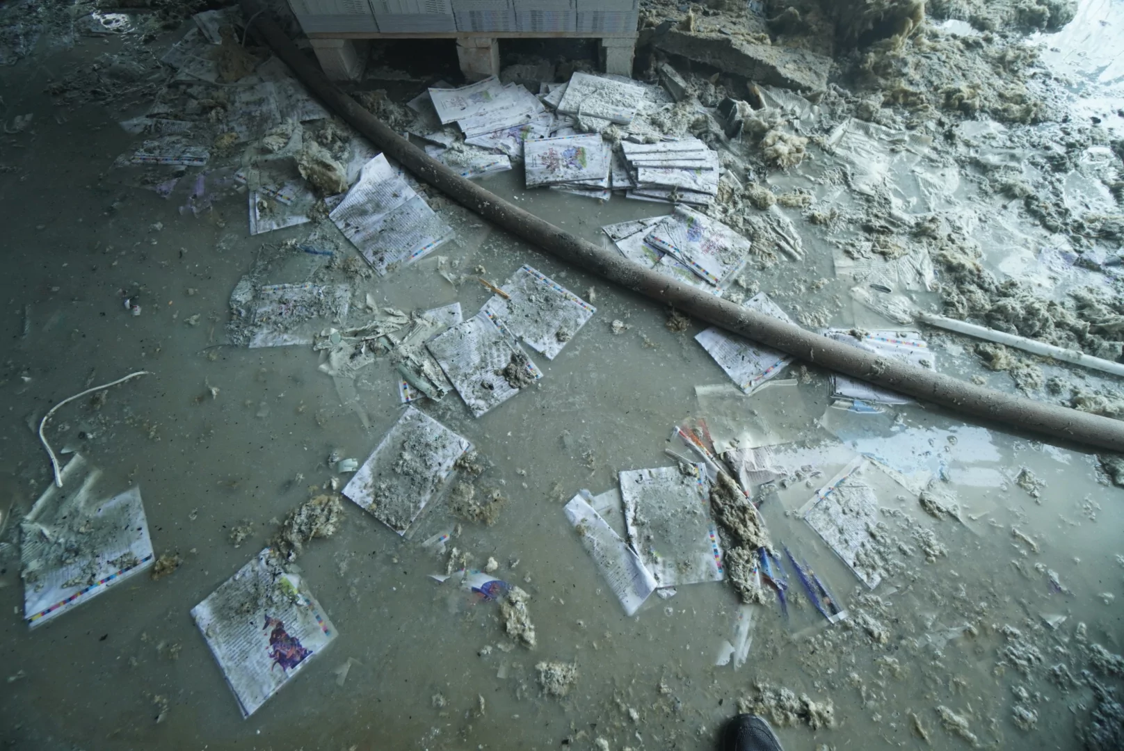 “It’s a printing fabric. Notebooks, books were printed here. Sadly, it was a work shift when the [missile] hit, preliminary, S-300 missile,” Kharkiv Mayor Ihor Terekhov said. On this impact site, the fire in the aftermath of the strike spread to nearly 500 square meters, but was localized.