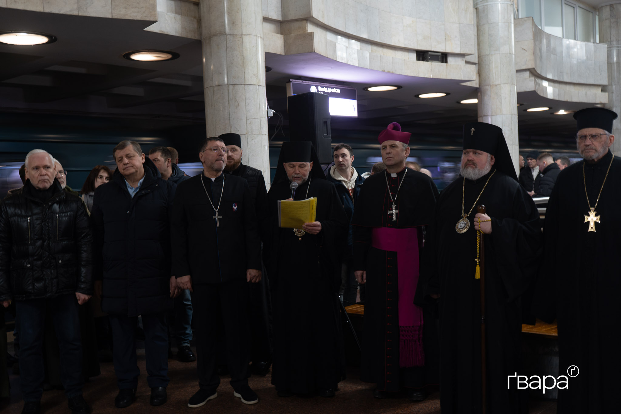 An hour later, a joint prayer service begins at one of the central subway stations, attended by Kharkiv City Mayor Ihor Terekhov and representatives of various Christian denominations.