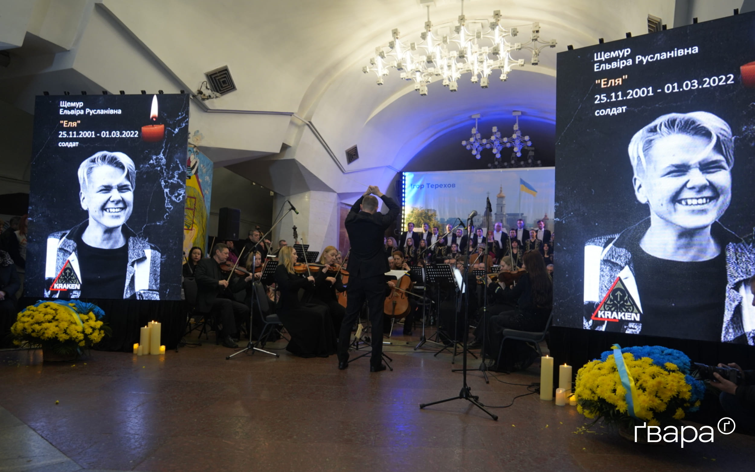 In the afternoon, at another metro station, a requiem for the fallen defenders was held, commemorating the deaths of those who were born in the Kharkiv region. The orchestra performed prayers and memorial songs. Digital screens displayed photos of people killed in Russia’s war. Their names.