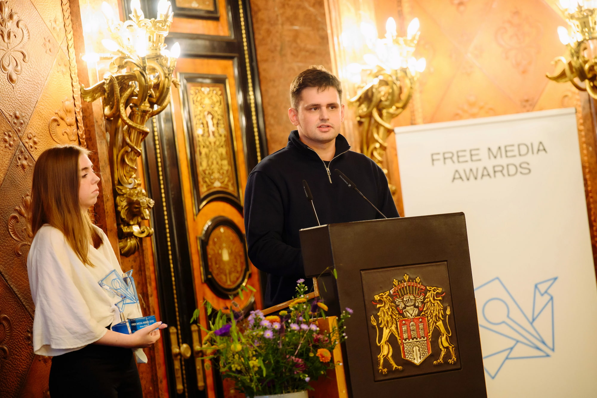 GERMANY, HAMBURG, Nov. 7 — Part of the team of Gwara Media, a Kharkiv-based media covering life and Russia’s war in Kharkiv and the Kharkiv region of Ukraine, received the Free Media Award, a press prize from the Fritt Ord Foundation and the ZEIT Stiftung Bucerius.