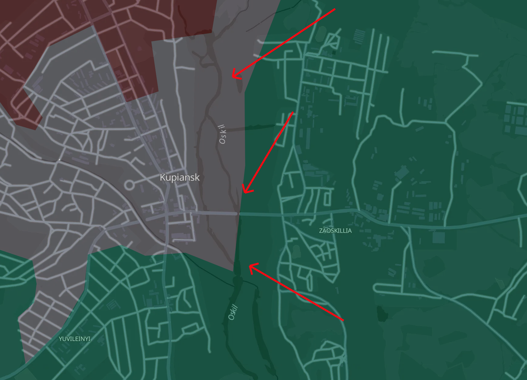 They’ve managed to do so near Dvorichna settlement in 2025, and now, according to Fedorenko, are attacking the bridges to the left bank of the river in Kupiansk from artillery and drones.