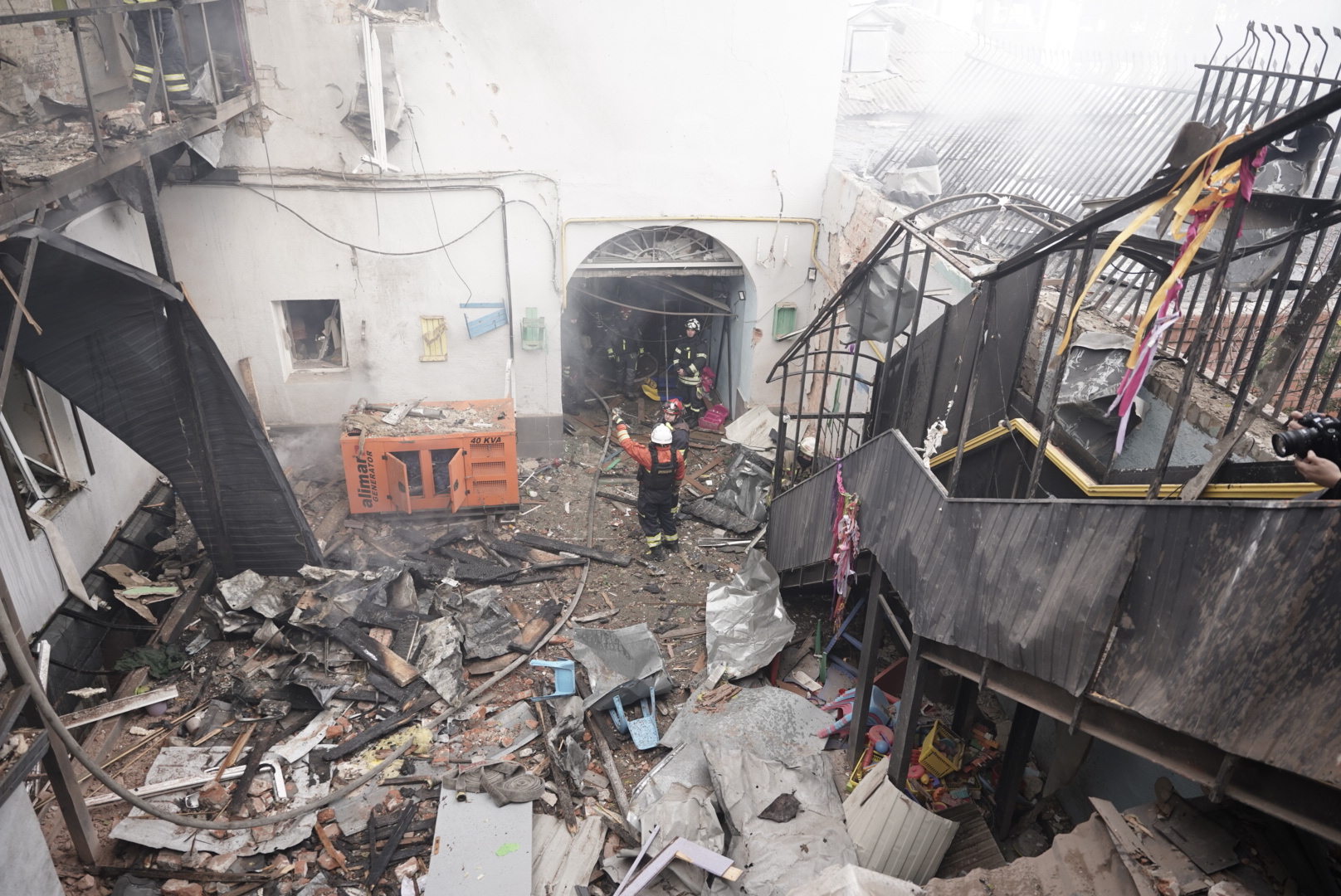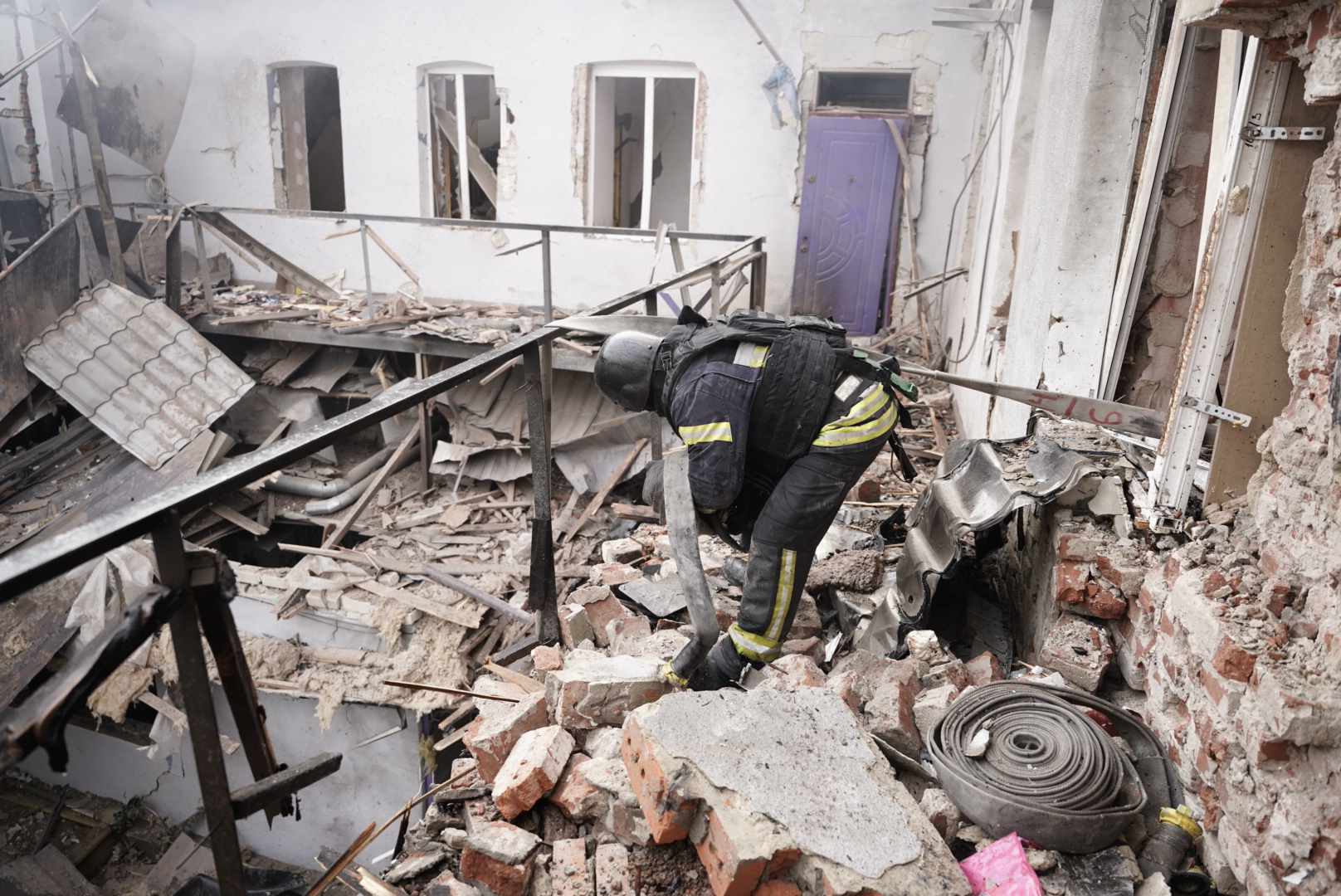 Cover photo: Emergency worker goes to the second floor of kindergarten in Kharkiv, severely damaged by three Russian kamikaze drones / Photo: Gwara Media, Mykyta Kuznetsov