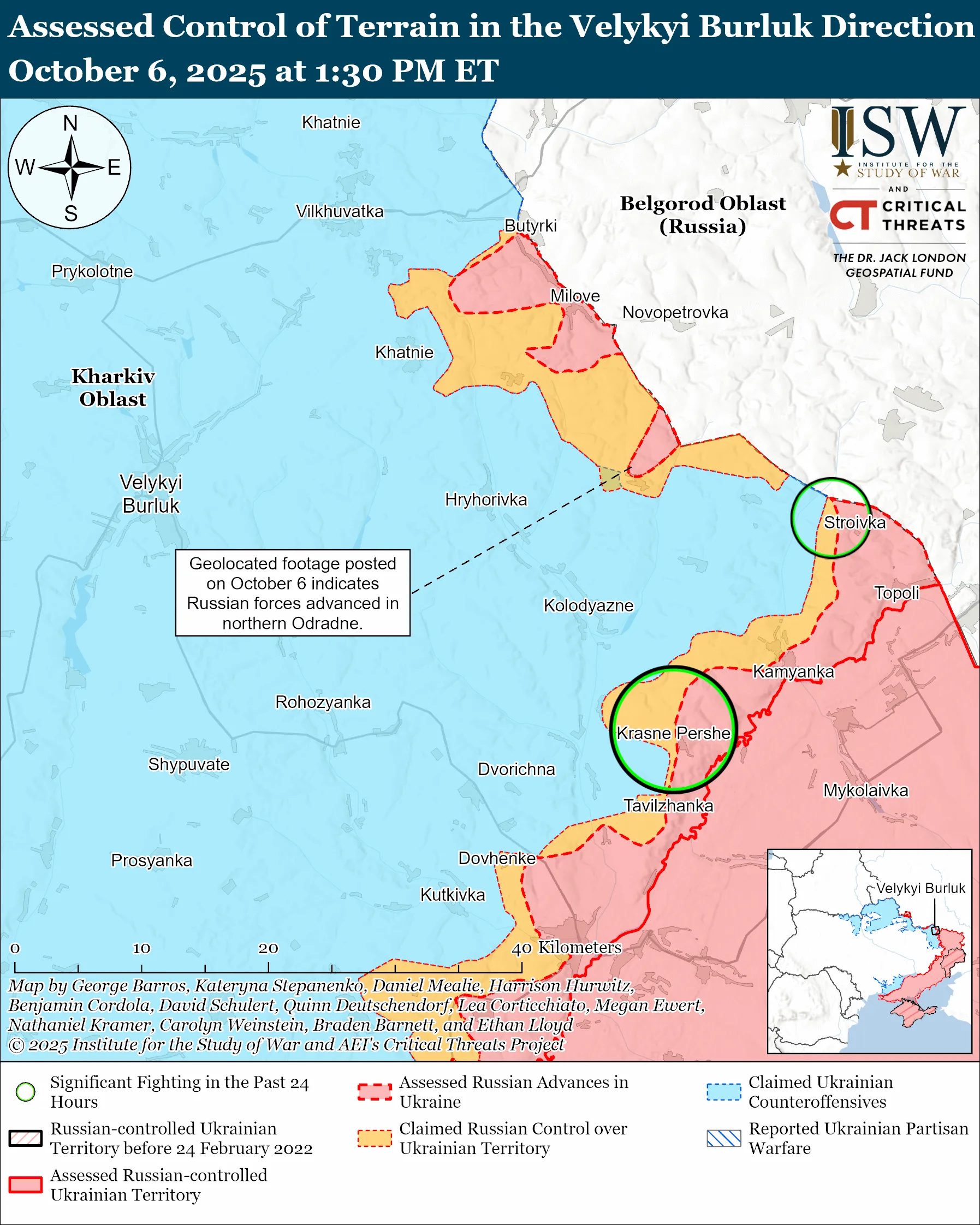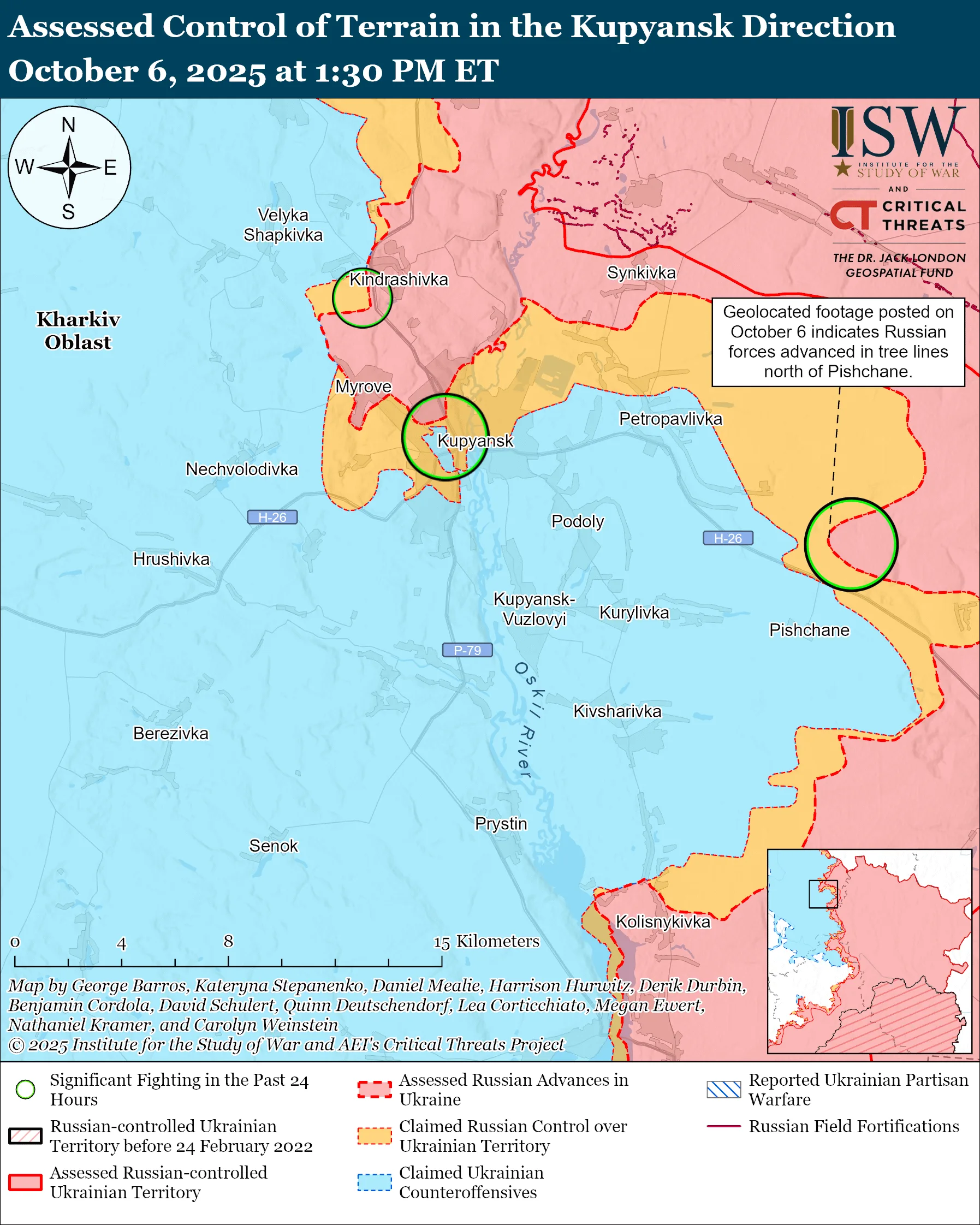 UKRAINE, KHARKIV OBLAST, Oct. 7 — The Institute for the Study of War (ISW) in its assessment for Oct. 6 reported about advances of the Russian army on the Kupiansk and Velykyi Burluk axes.