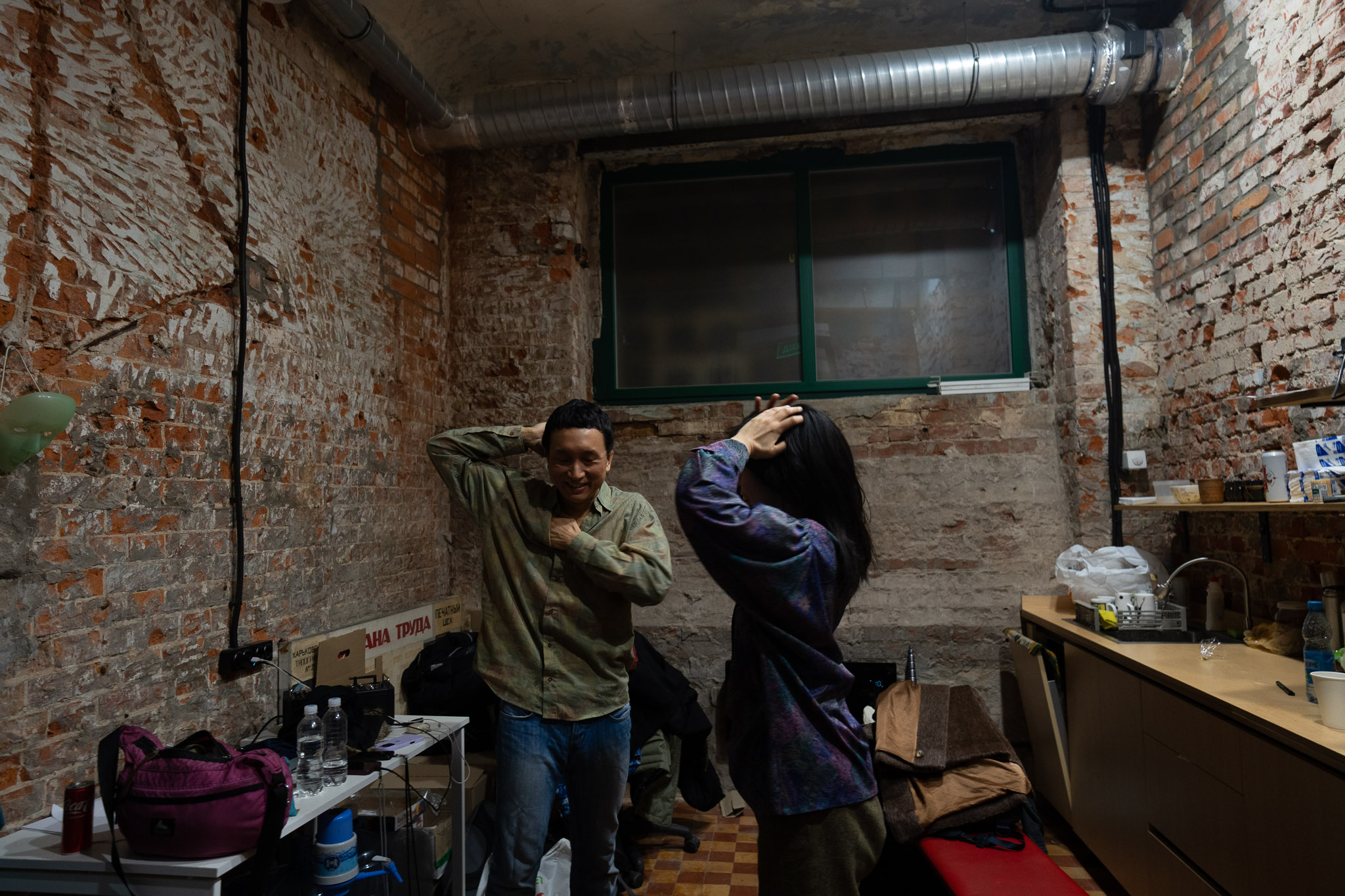 I plan to meet with Hiroki and Sara the day after the concert in a popular Kharkiv cafe that brews good coffee and refuses to turn off the music. ASAP production’s film crew, along with Alem Kent, one of the INOICHI directors, makes peace with the fact that they can’t record much dialogue here. The music will make it impossible to mix the sound properly. Instead, they order hot drinks.