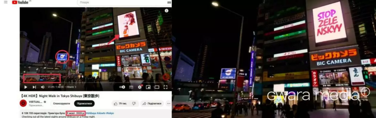 Насправді оригінальне відео завантажили в YouTube у жовтні 2020 року, тобто до повномасштабного вторгнення, на YouTube-каналі VIRTUAL JAPAN. Автор знімає відео з вулиць району Шібуя в Токіо.