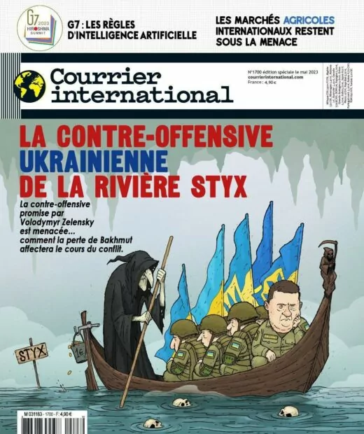 Обкладинка видання Courrier international під назвою «Український контрнаступ на річці Стікс»