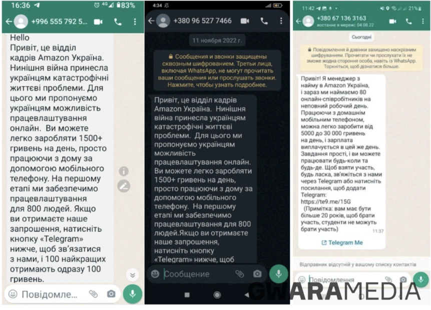 В оголошеннях, що надсилають з різних номерів телефонів, Amazon Україна пропонує нібито розглянути аж 800 вільних вакансій та «легко заробляти 1500+ гривень на день».