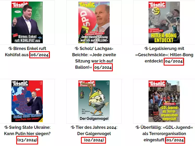 В попередніх наших матеріалах про фейкові обкладинки «Titanic» ми зазначали, що фейкороби постійно припускаються однієї тієї самої помилки: в третьому рядку загальної інформації про випуск журналу, на справжній обкладинці вказується номер випуску, а у фейкоробів – напис «Internet-Aufgabe», що перекладається з німецької як «Інтернет-завдання». Тож, цей примірник також не став винятком, і на обкладинці знов вказується «Internet-Aufgabe».