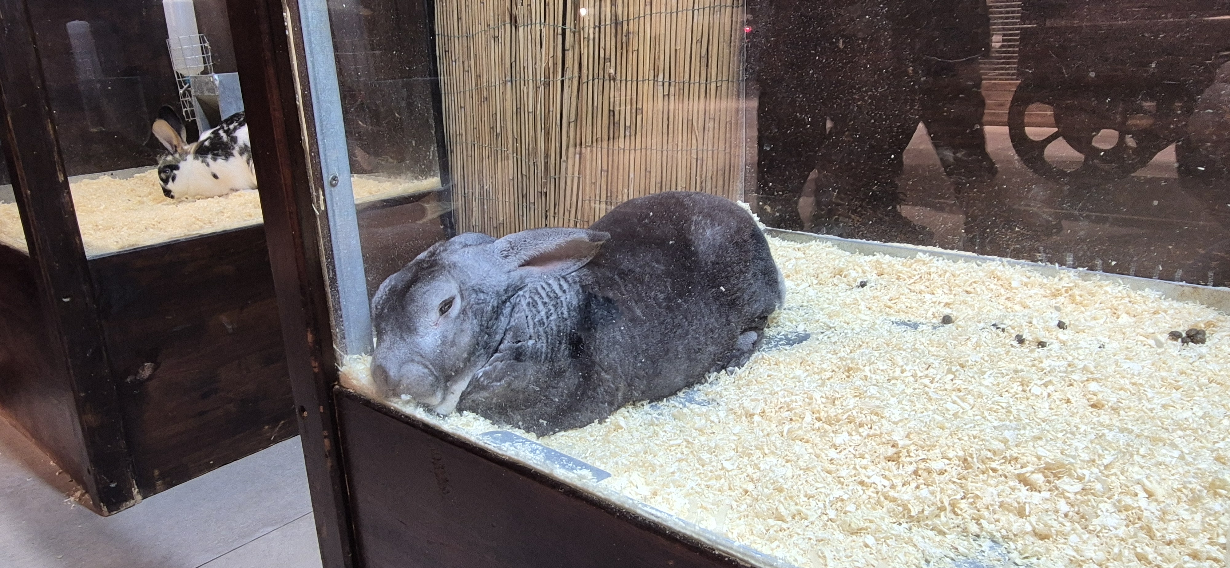 У дерев’яних візках та скляних коробках здебільшого сидять кролики. Вони майже не рухаються — лише інколи підстрибують до миски з водою або чухають лапою за довгими вухами.