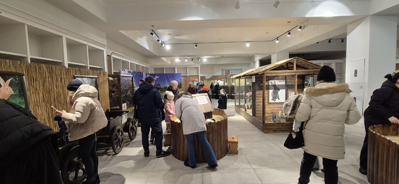 Виставкова зала облаштована у стилі ферми. По периметру розташовані солом’яні декорації, банер із видом на зелену галявину та вольєри — дерев’яні візки, скляні коробки, клітки та п’єдестали з мініатюрними будинками. Де-не-де стоять табуретки, щоб діти могли дотягнутися до тварин.