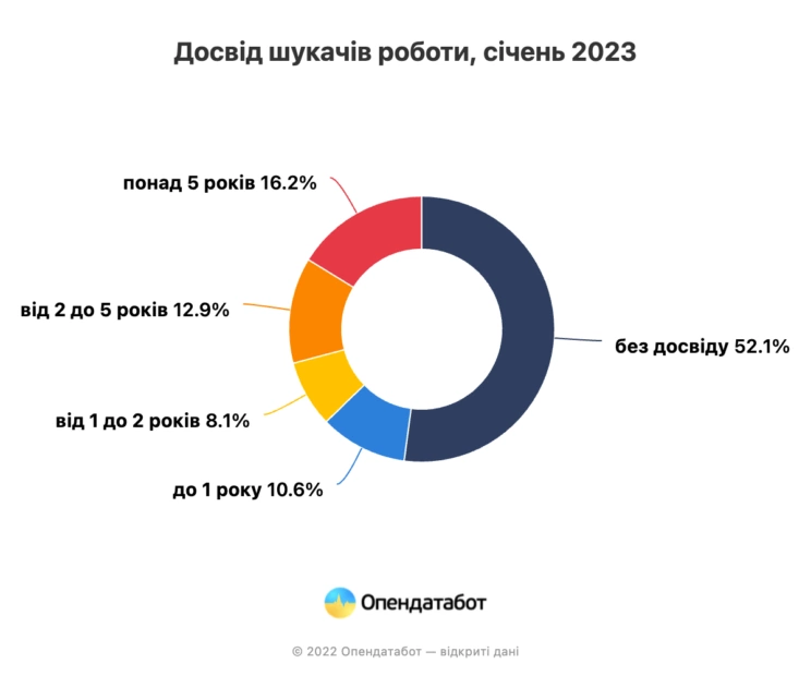 Кількість резюме в цьому році зросла на 18% — це близько 437 тисяч. Понад половина людей з новими резюме не має досвіду роботи. Фахівці віком від 16 до 34 шукають роботу найчастіше.