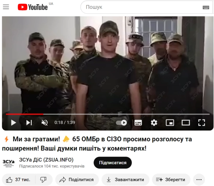 На відео в кадрі знаходяться семеро чоловіків, одягнених у військову форму. Чоловік, який знаходиться по центру, звертається до Володимира Зеленського та Валерія Залужного з закликом розібратися у ситуації. З його слів, люди на відео — є військовослужбовцями 65 ОМБр з військової частини А7013, яких утримують в СІЗО без пред’явлення обвинувачень.