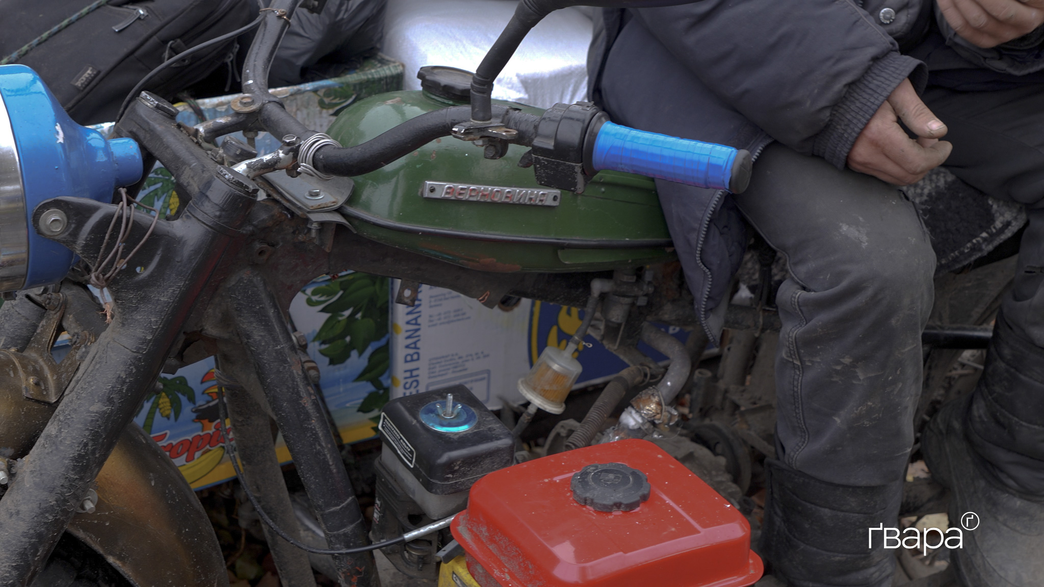 У Слатиному ми також познайомилися з сорокарічним Сергієм. Він став «швидкою» для своїх односельців. Розповідає, що з підручних деталей зібрав мотор для мотоцикла із візком, навчившись цього з інтернету. Тепер в ньому він возить усе: гуманітарку, хворих, поранених від російських атак. Іноді — загиблих.