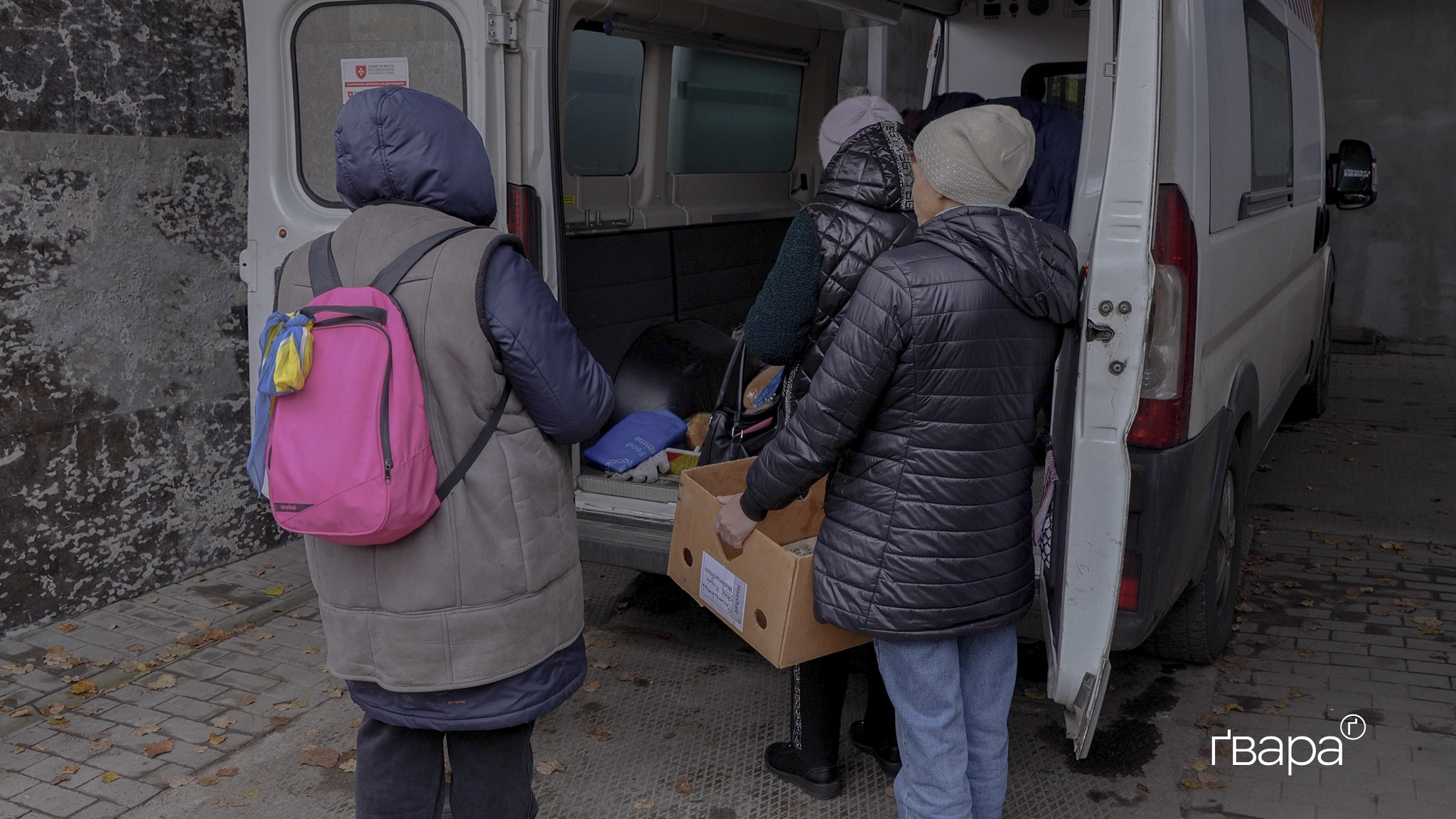 До війни Сергій працював копачем могил, а зараз його робота — рятувати життя. Він розповідає, що хоч і боїться російських дронів, які, бувало, за ним ганялися, продовжує їздить й допомагати сусідам і близьким. Сьогодні він приїхав з Козачої зі своєю матір’ю. Вона пережила інсульт. Їй Сергій також возив ліки зі Слатиного.