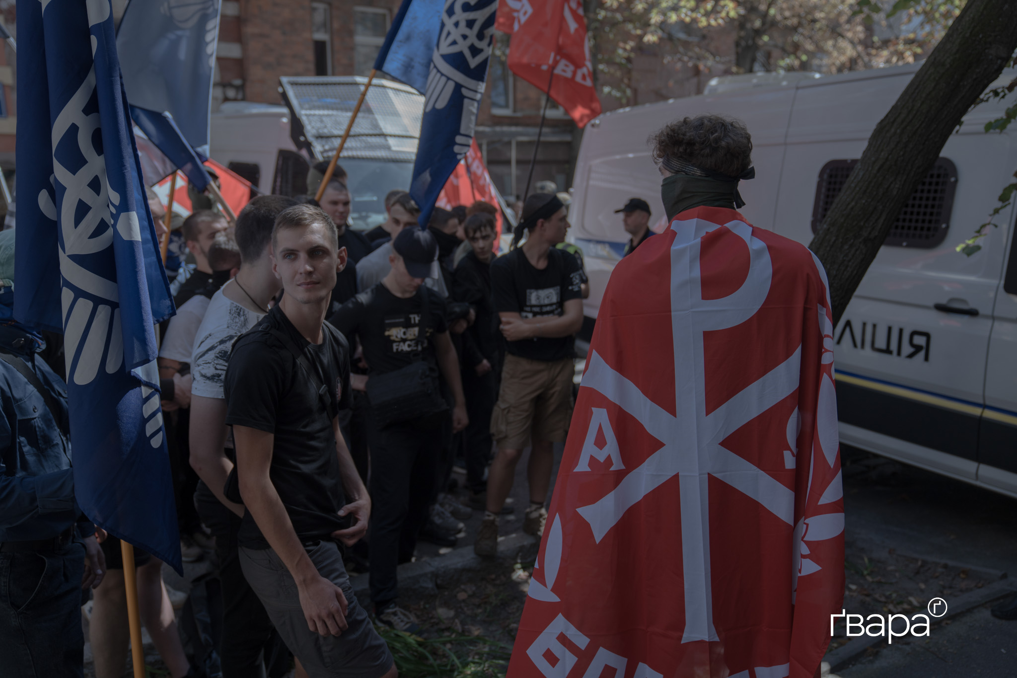— Ми не проти геїв і лесбійок, — запевняє мене учасник, маючи на увазі праві організації. — Але ми проти організаторів, які просувають ворожу ідеологію для України, коли в нас демографічна криза і деконсолідована нація. Тільки націоналізм, традиція, віра в Бога і віра в перемогу можуть допомогти нам в цій екзистенційній війні.