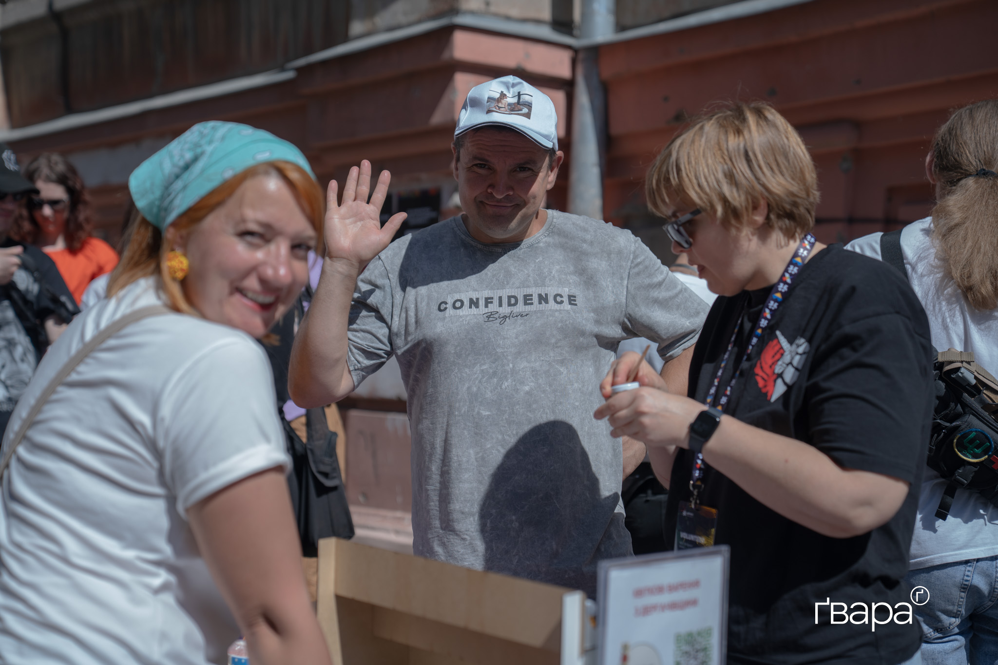 — Проводити заходи на вулиці — це додаткові ризики. Завжди страшно, коли є нападники. Інше — боюся, що люди не дійдуть, що їм не сподобається, — каже Анна Шаригіна. Сьогодні у неї напружений день, тому перехоплюю її для короткого коментаря в перерві між панельними дискусіями. — Через те що блокують вулицю, людей значно менше, ніж очікували.