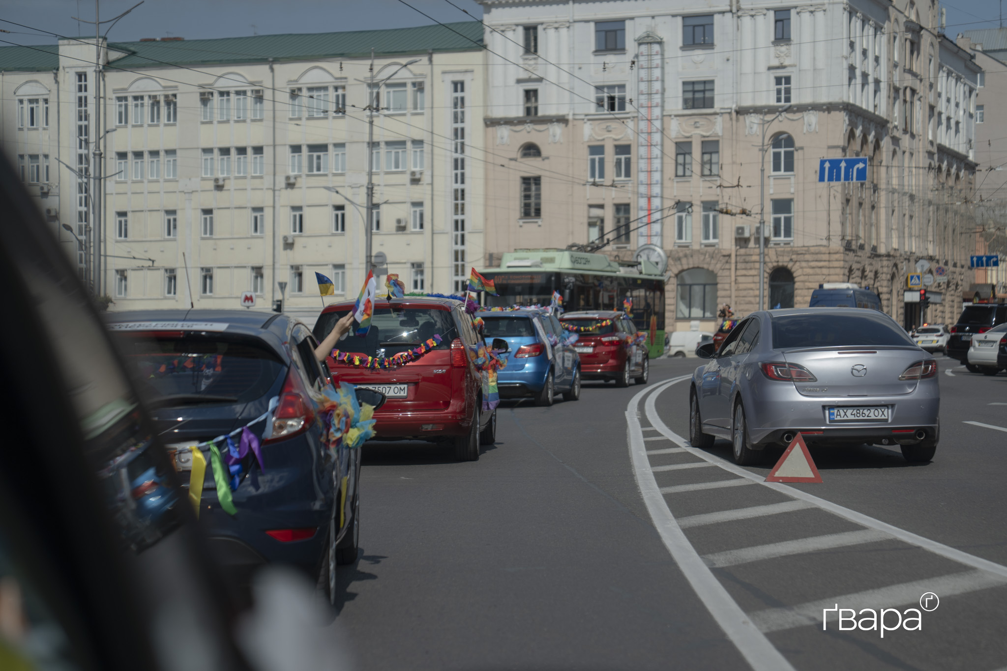Яскраво вдягнені люди підспівують українським пісням, що лунають з автівки. Квір-спільнота Харкова знає — сьогодні її день.