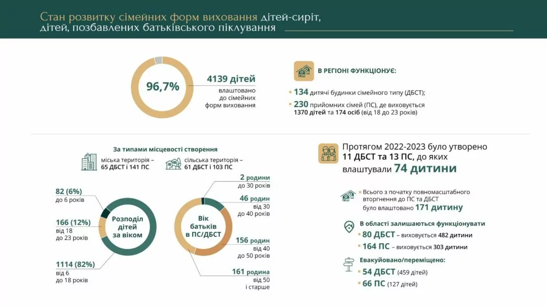 За словами Синєгубова, на території Харківщини діють 134 дитячі будинки сімейного типу та 230 прийомних сімей.