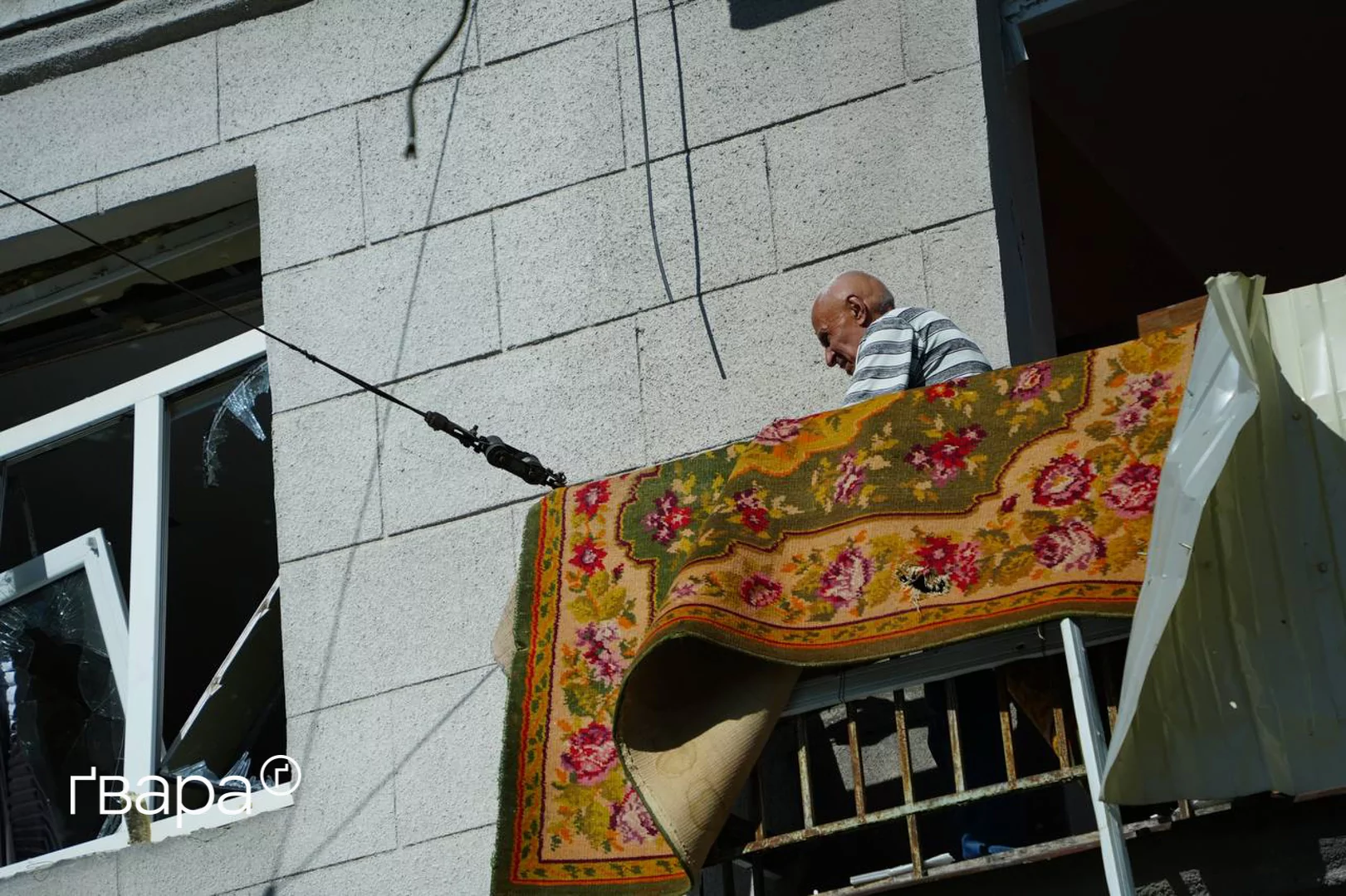 Фоторепортаж Ґвара Медіа з харківського проспекту, де після російської атаки – вибиті вікна та двері, пошкоджені автівки та будинки.