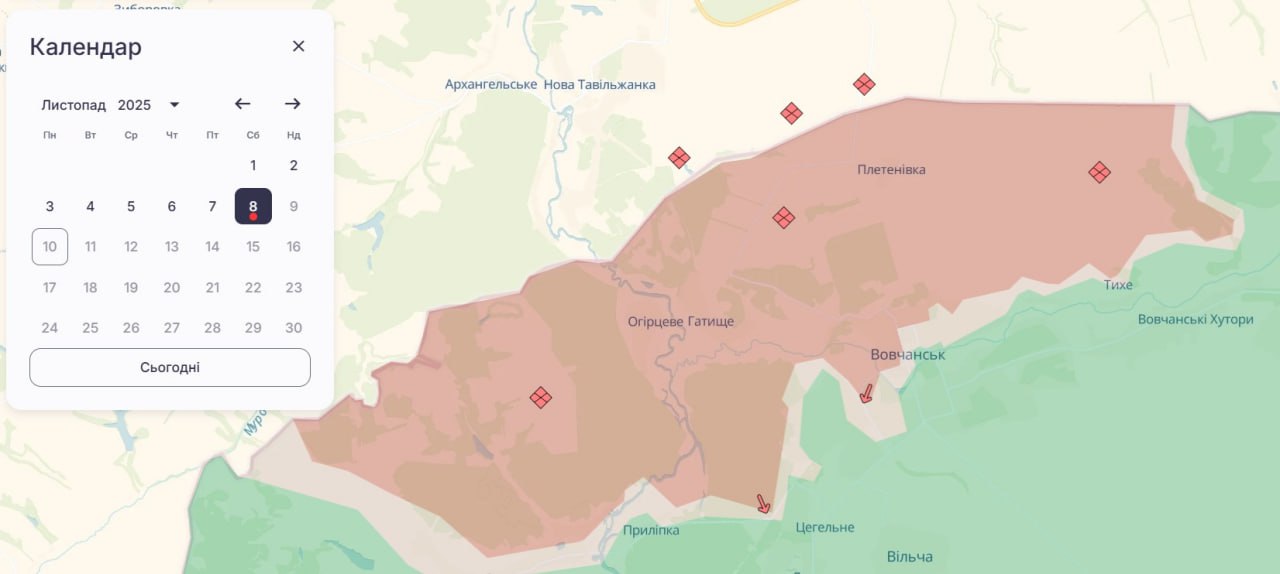 Нагадаємо, що 7 листопада аналітична платформа «DeepState» зафіксувала просування російської армії поблизу села Приліпка, що неподалік міста Вовчанськ Харківської області.