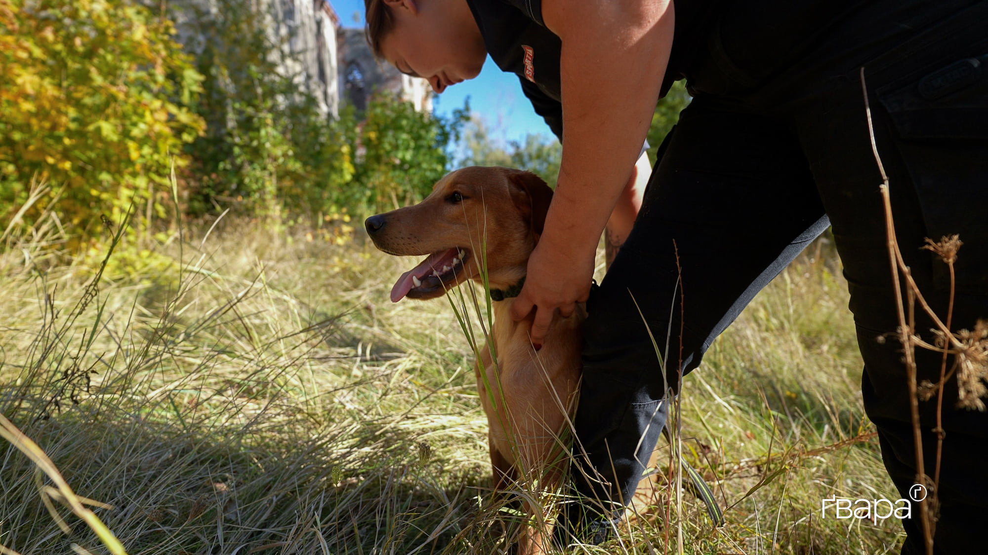 Через декілька невдалих спроб дівчина підсумовує: «Тут не всі. Сьогодні тренуватимемо собак, що шукають запахи живих та мертвих людей. По живих у нас Бро і Мудрик, а по трупах — Куба й Арчі».
