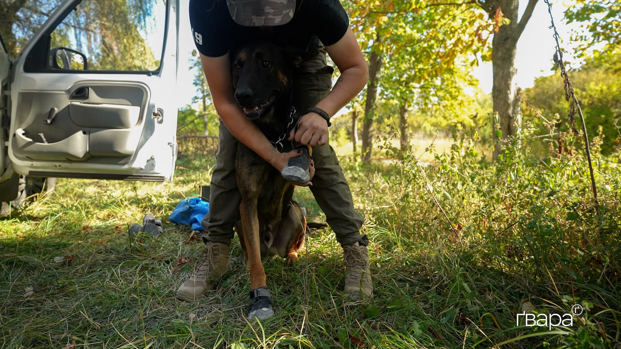 «Ми напрацьовуємо у собаки бажання дістатися до людини попри все», — зауважила Олександра, поки її колега ховала «запахи» на локації.
