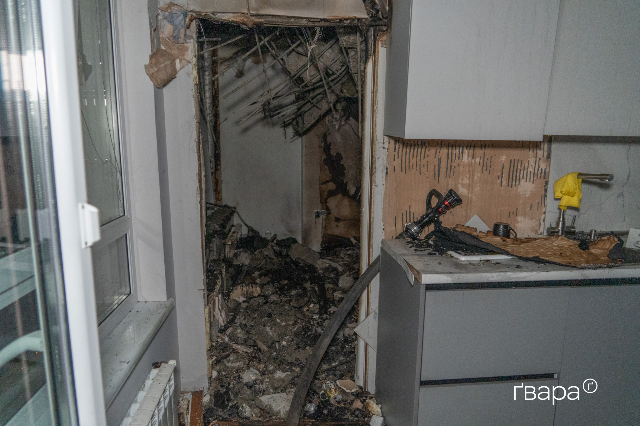 «Пошкоджені близько десяти автомобілів, знищені три автівки. Маємо повністю знищену квартиру на 17 поверсі. Окрім цього, ще є два влучання неподалік – також у житловий багатоквартирний будинок та поруч з ним», – повідомив журналістам представник прокуратури на місці влучання.