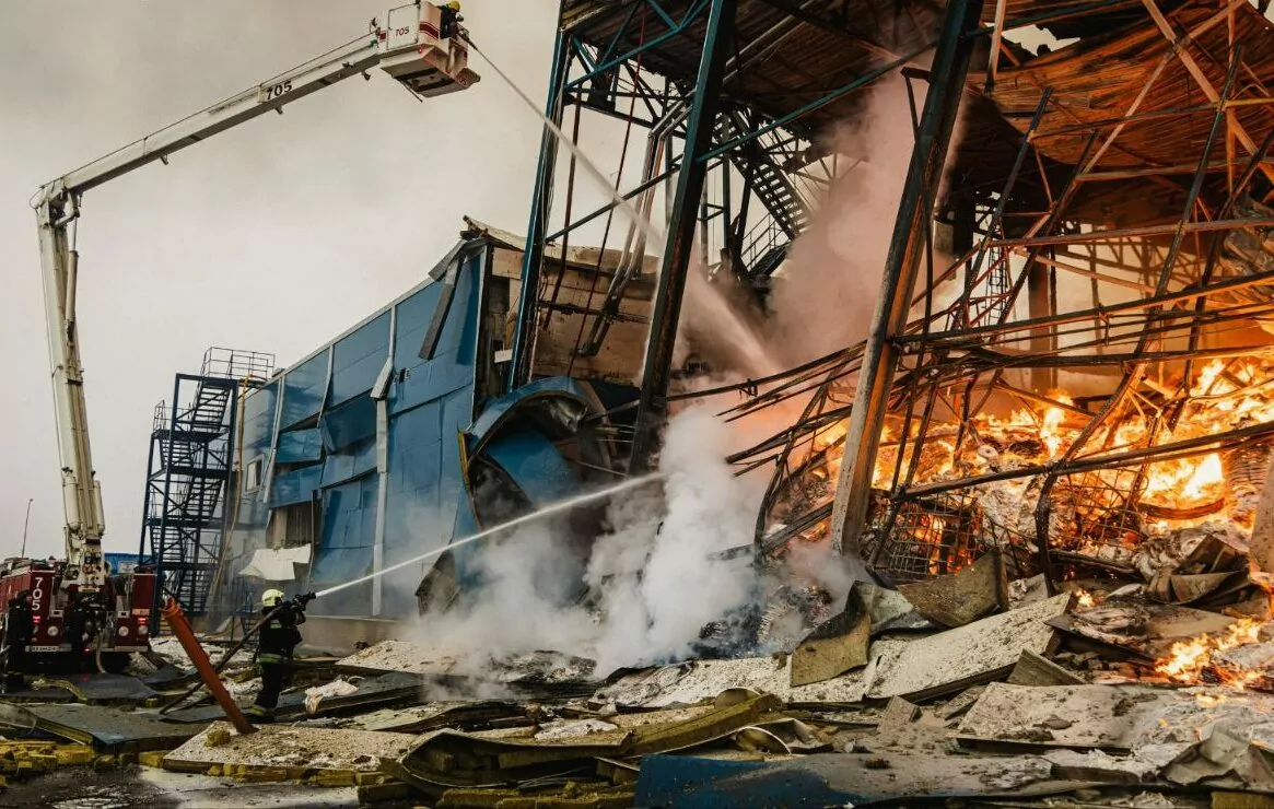 Так, унаслідок обстрілу здійнялась пожежа площею більш ніж 5000 квадратних метрів, зруйновано будівельні конструкції.