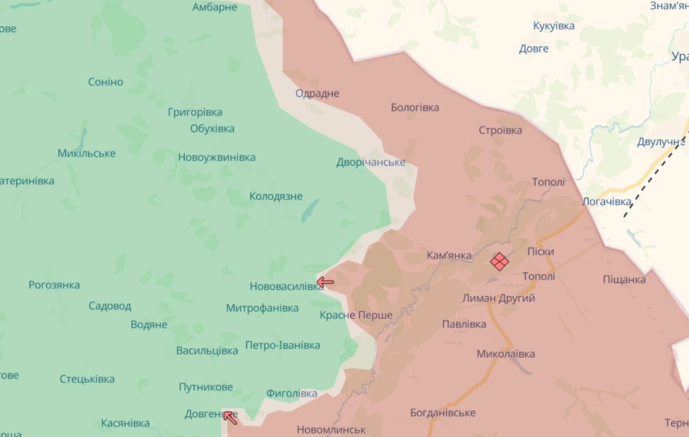 Згідно з оновленою мапою DeepState, російські війська окупували два села у Куп’янському районі — Одрадне та Бологівку.