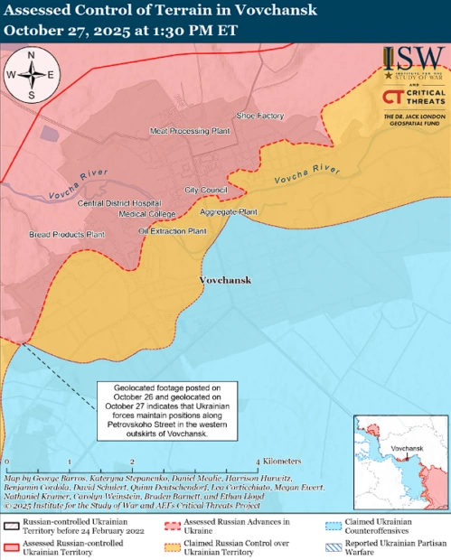 Водночас українські війська утримують позиції у західному Вовчанську, попри заяви Росії про свою присутність там.