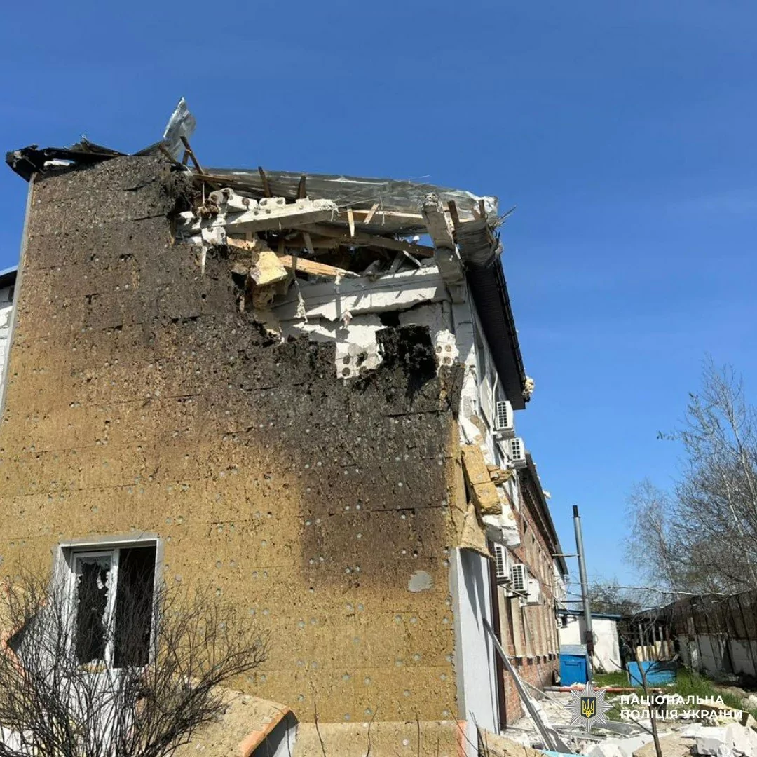 Вранці 16 квітня в Мерефі на Харківщині російський безпілотник завдав повторного удару по людях, які прибирали наслідки попереднього обстрілу на території підприємства.