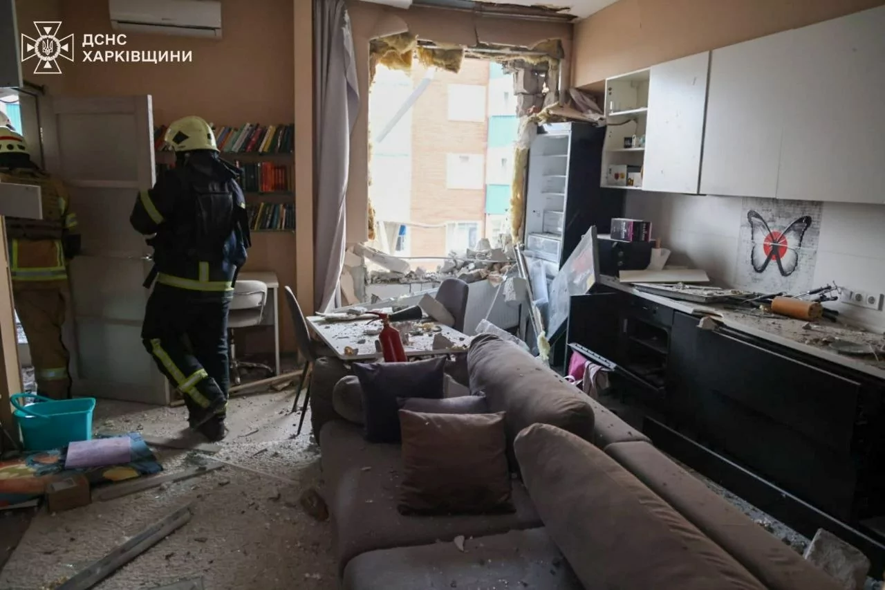 Вранці 14 квітня російський БпЛА влучив у балкон квартири багатоповерхівки у Шевченківському районі Харкова. На місці здійнялась пожежа, постраждала 44-річна жінка.
