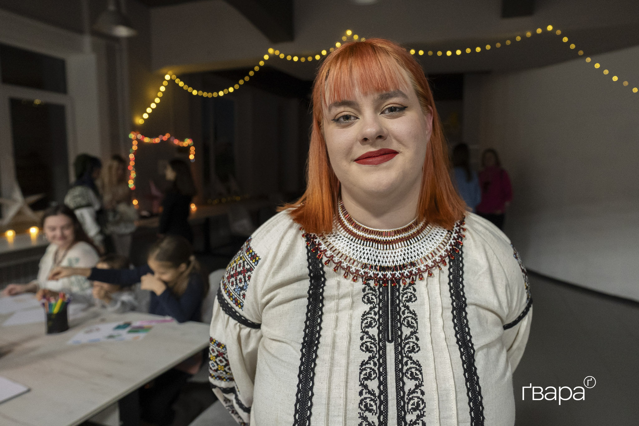 Дівчина ділиться, що обрала сьогодні роль ворожки, бо це їй підходить по «вайбу» й вона любить дарувати людям усмішки. Додає, що нині на вечорницях поєднують традиційні ворожіння із сучасними.
