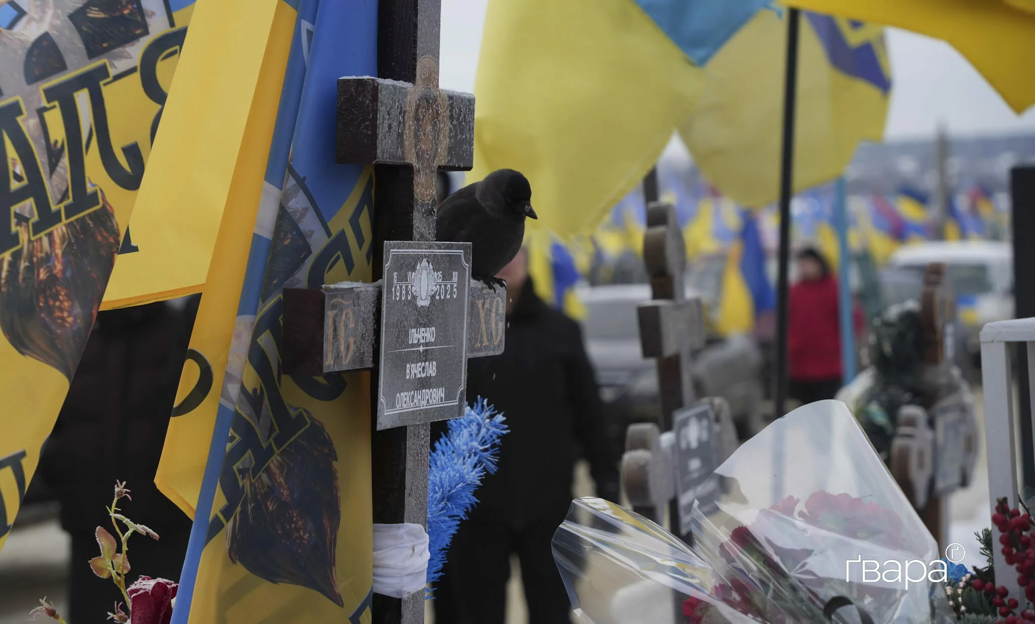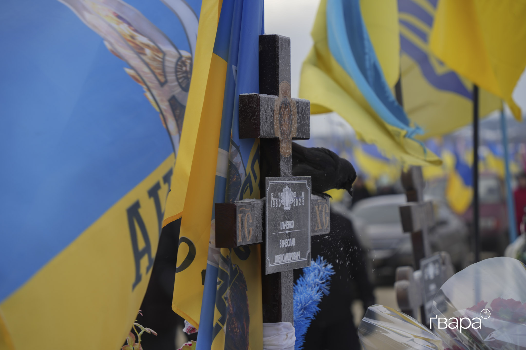 Друзі та колеги В’ячеслава почали збиратися близько восьмої ранку. Після хвилини мовчання о дев’ятій, колона автівок з прапорами рушила на кладовище.
