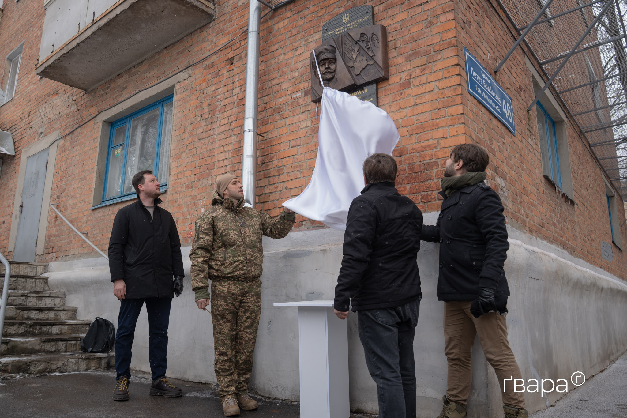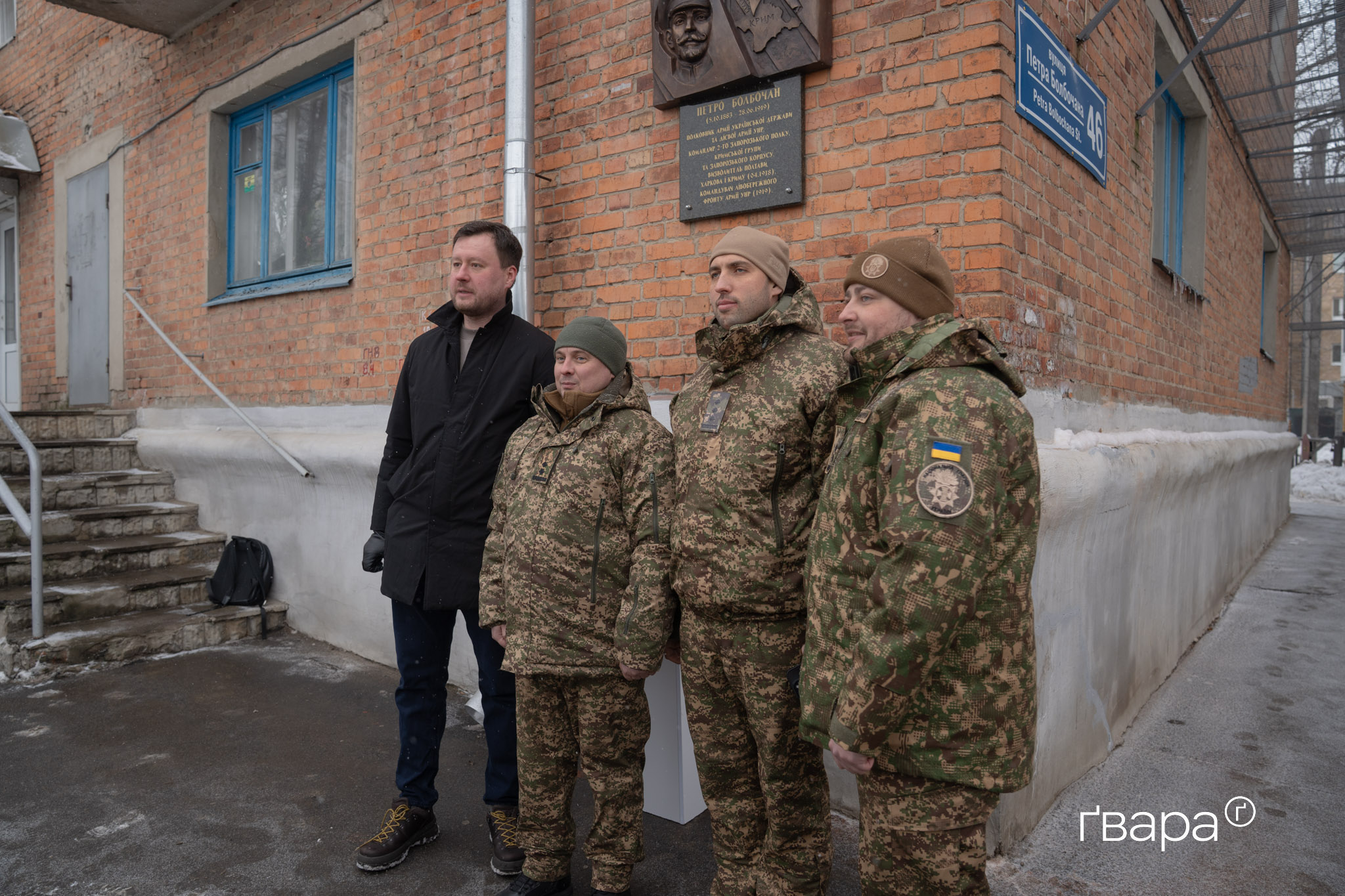 Під час відкриття пам’ятки також виступив громадський діяч, військовослужбовець бригади ім. Петра Болбочана «Спартан» Дмитро Булах. Він наголосив на спадковості боротьби за незалежність України: