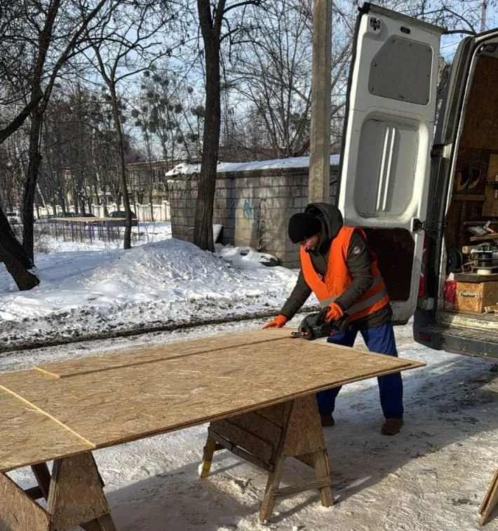 Станом на 14:20 комунальні служби усувають наслідки вибухів та оперативно закривають контури вибитих вікон.