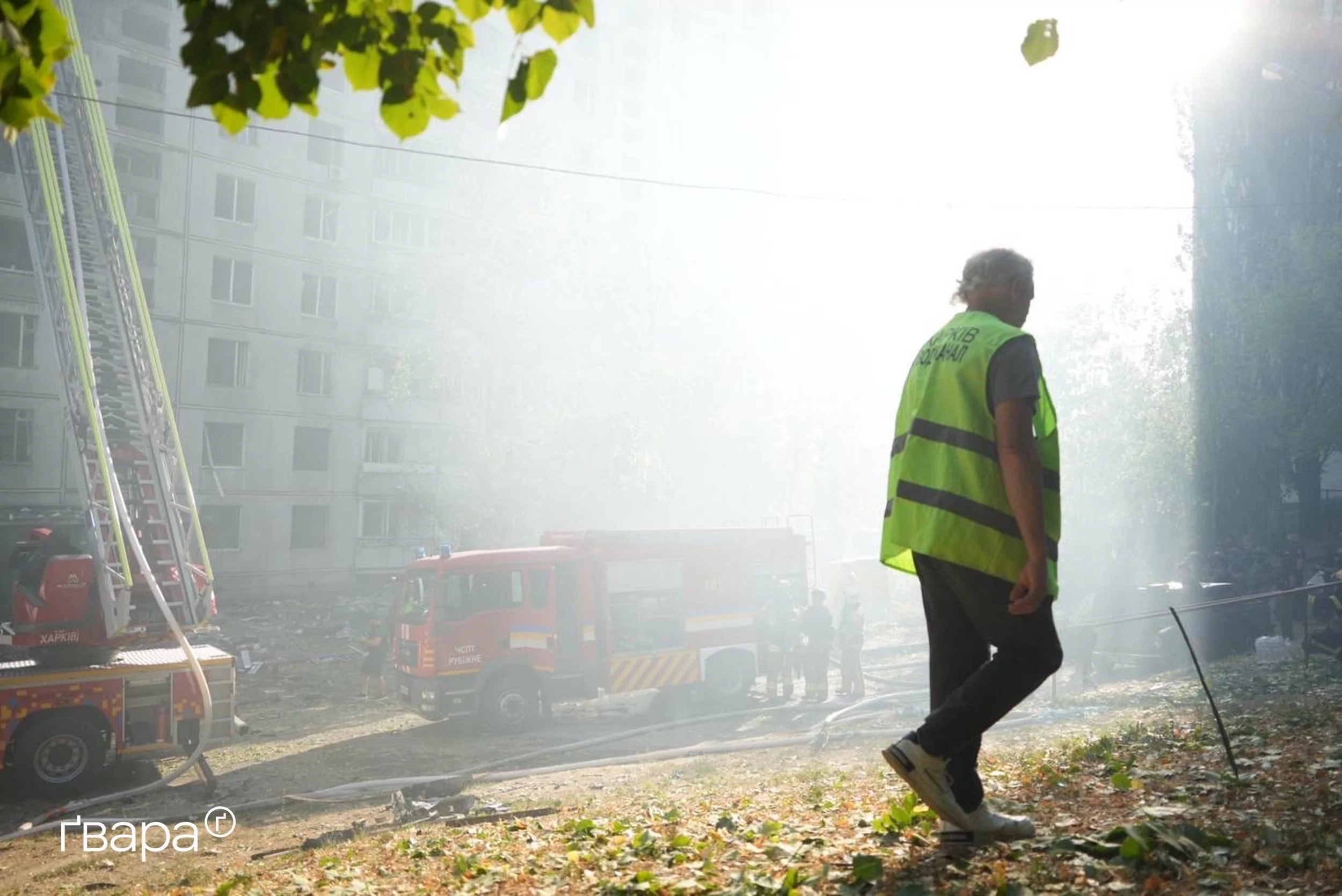 «Дуже багато людей евакуйовано із цього будинку. Ми розгорнули сьогодні Пункт Незламності в школі. Крім цього, ми маємо можливість розселити людей, якщо в цьому буде потреба, — прокоментував мер міста Ігор Терехов. Це густонаселений район Харкова. Житлова забудова — спальний район міста. Тут немає жодного військового об’єкта».