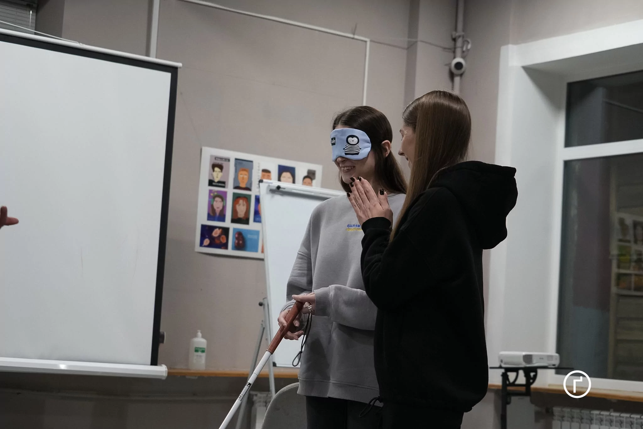 На самому заході всі учасники змогли дізнатися більше про життя незрячої людини. Володимир Носков розповів про спеціальні додатки, котрі дозволяють незрячим людям користуватися соціальними мережами, веб-пошуком і працювати.