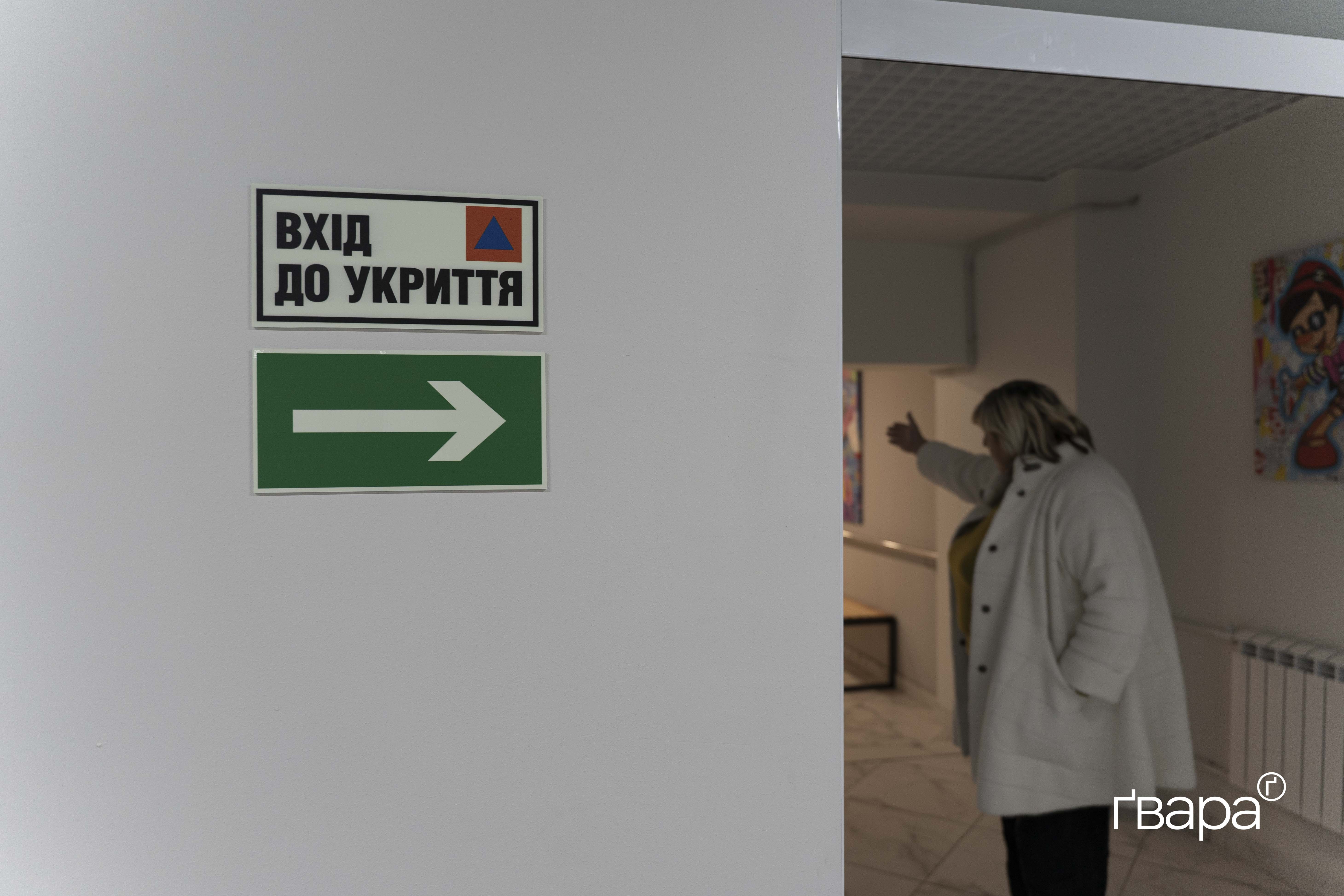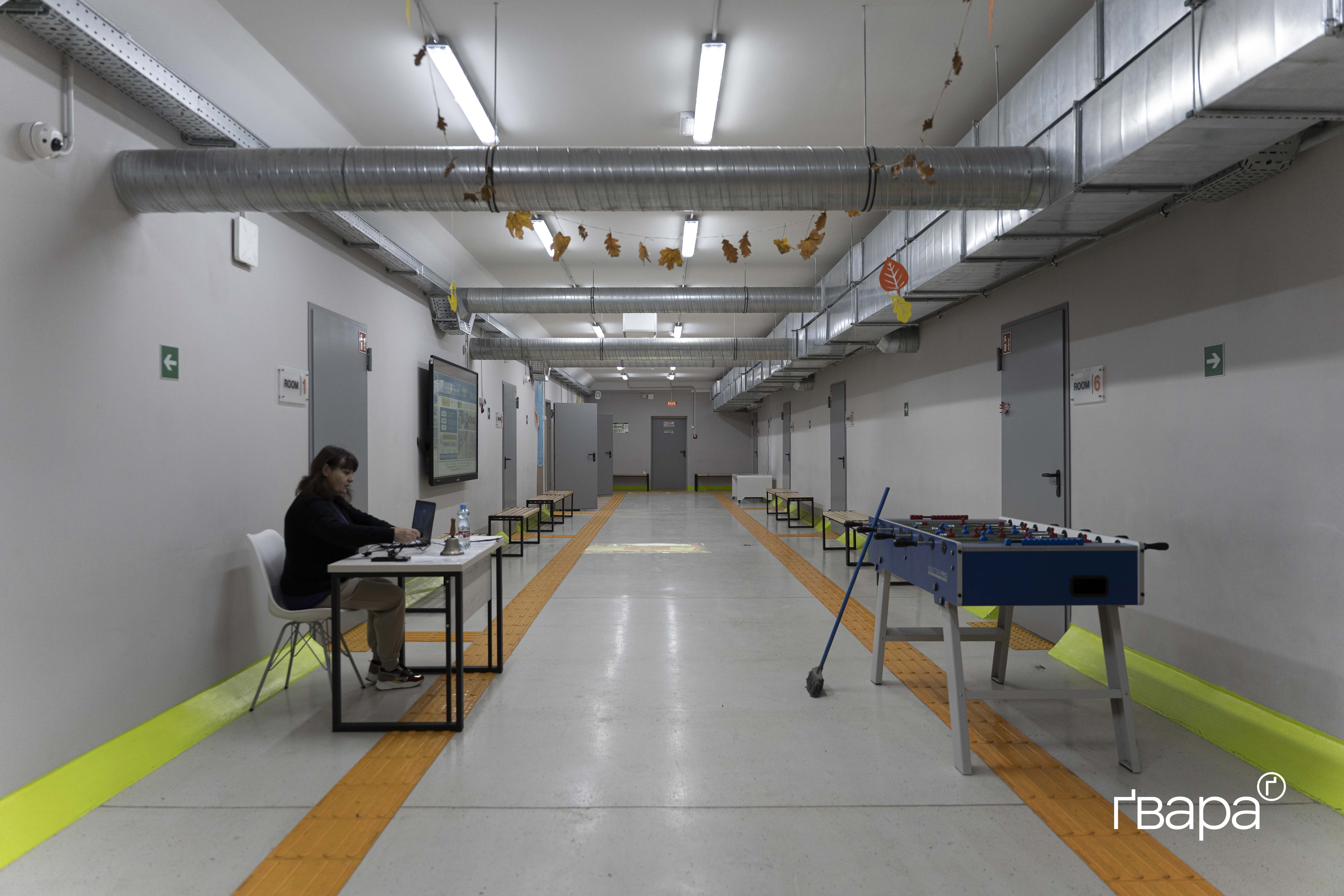 Директорка каже, що в укритті є все необхідне, щоби близько пів тисячі людей змогли сховатися на 48 годин. Ми оглядаємо різні кімнати. В одній стоїть резервуар із водою, у другій — вентиляційна система з властивістю регенерації повітря, у третій — генератор.