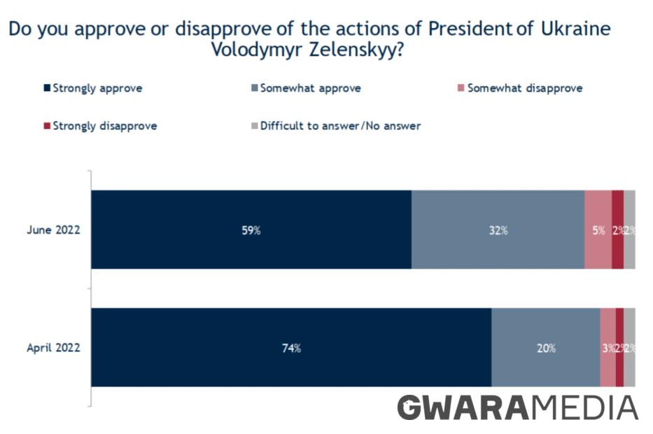 64% впевнені, що Україна збереже всі території від її міжнародно визнаних кордонів у 1991 році після нинішньої війни. Ще 14% стверджують, що Україна поверне територію під свій контроль до нападу Росії 24 лютого.