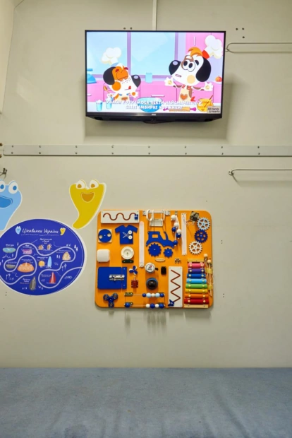 Крім того, окремо у вагонах облаштували дитячі купе з ігровими наборами, книжками, навчальними матеріалами та мультфільм-зоною.