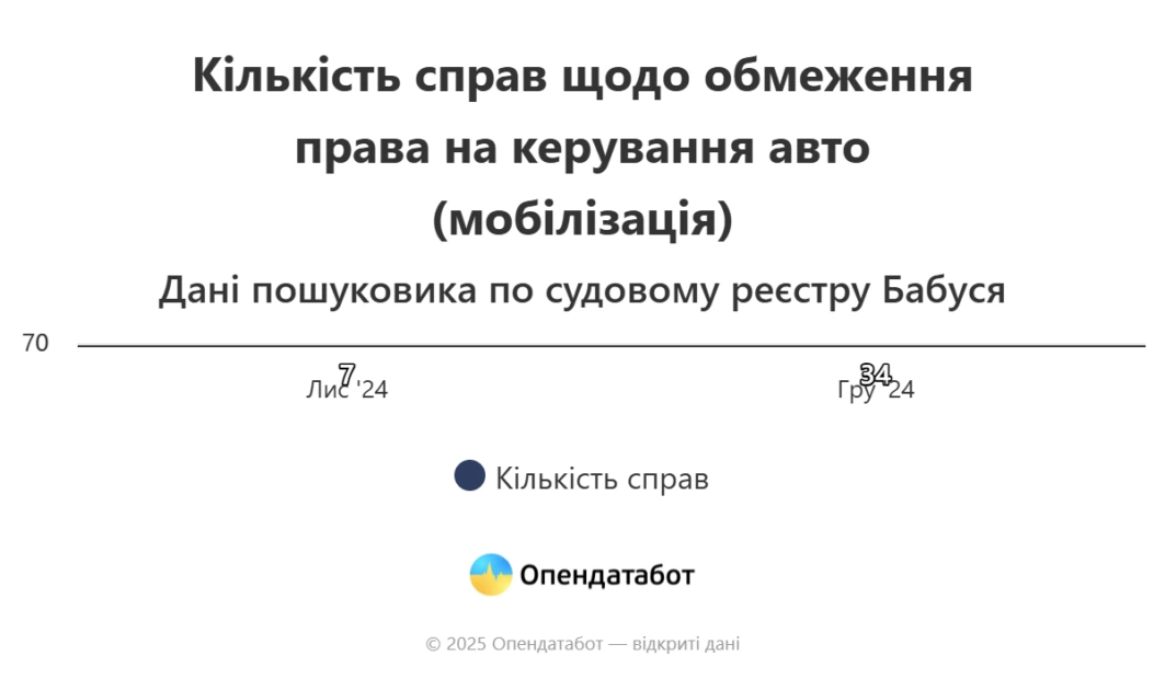 Крім цього, зареєстрована щонайменше 41 судова справа, пов’язана з обмеженням права на керування авто через порушення правил військового обліку.
