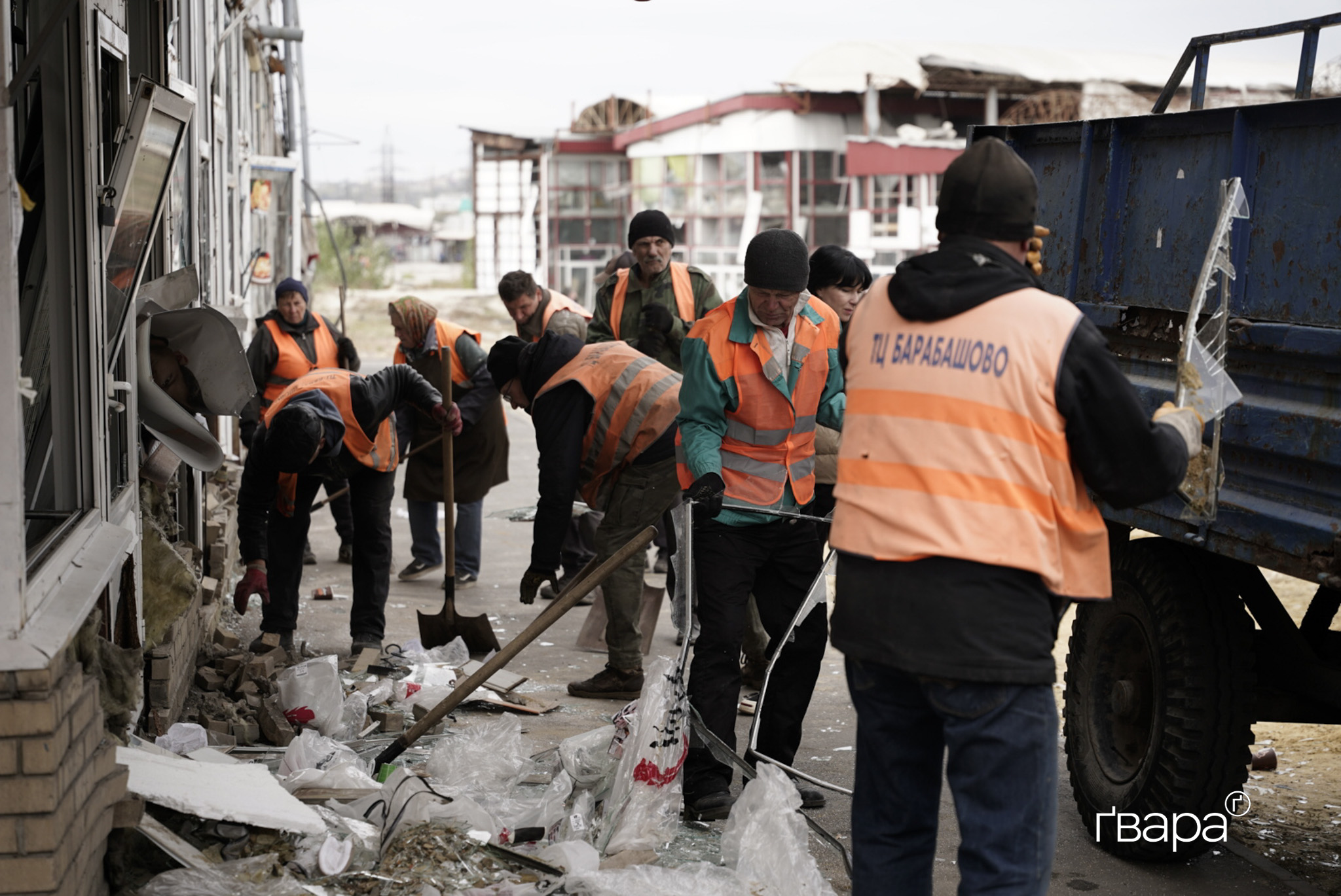 На місці працюють комунальні служби, які фіксують пошкодження та прибирають наслідки обстрілів.