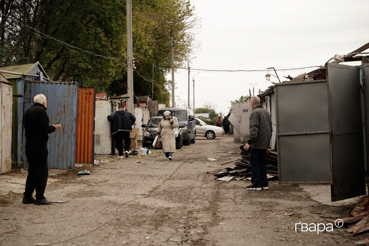 За словами місцевих мешканців, удар припав на гаражі, однак вибуховою хвилею вибило вікна у сусідній п’ятиповерхівці.
