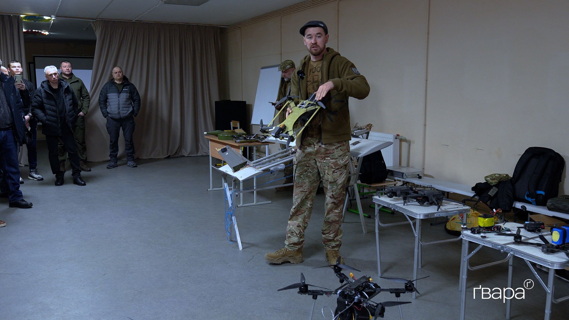 «Дуже страшно, коли на тебе летить дрон із боєприпасом. Ти розумієш, що хтось хоче вбити саме тебе. Ще страшніше, коли не знаєш, як протидіяти цій загрозі», — так починає лекцію для працівників адміністрації однієї з прифронтових громад Харківщини командир «Гострих картузів» Залізняк.