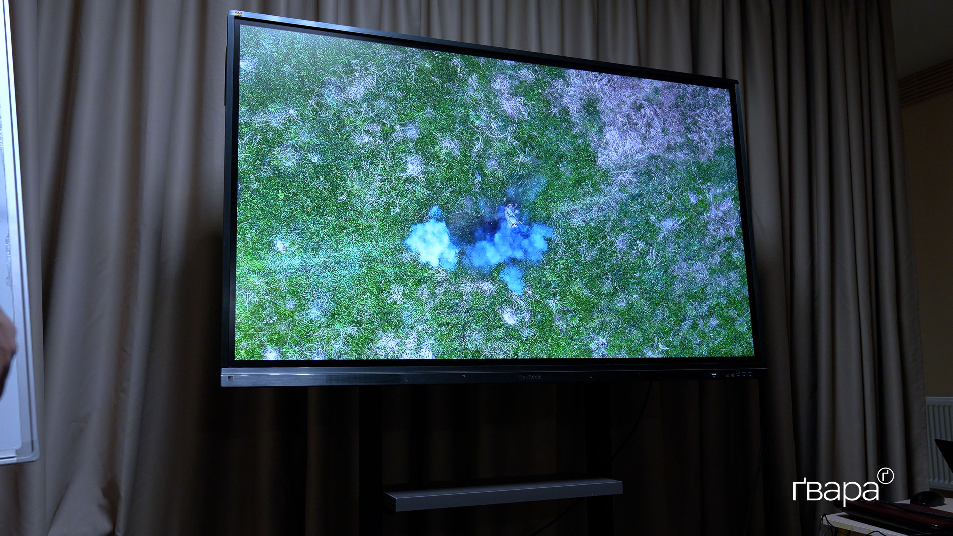 «Висота у дрона тут невелика — його можна було почути, якби військовий прислухався до неба», — коментує Залізняк, демонструючи відео скидання боєприпасу з «Мавіка» на російського військового. Боєприпас падає поруч із солдатом і уламками перебиває йому ногу.